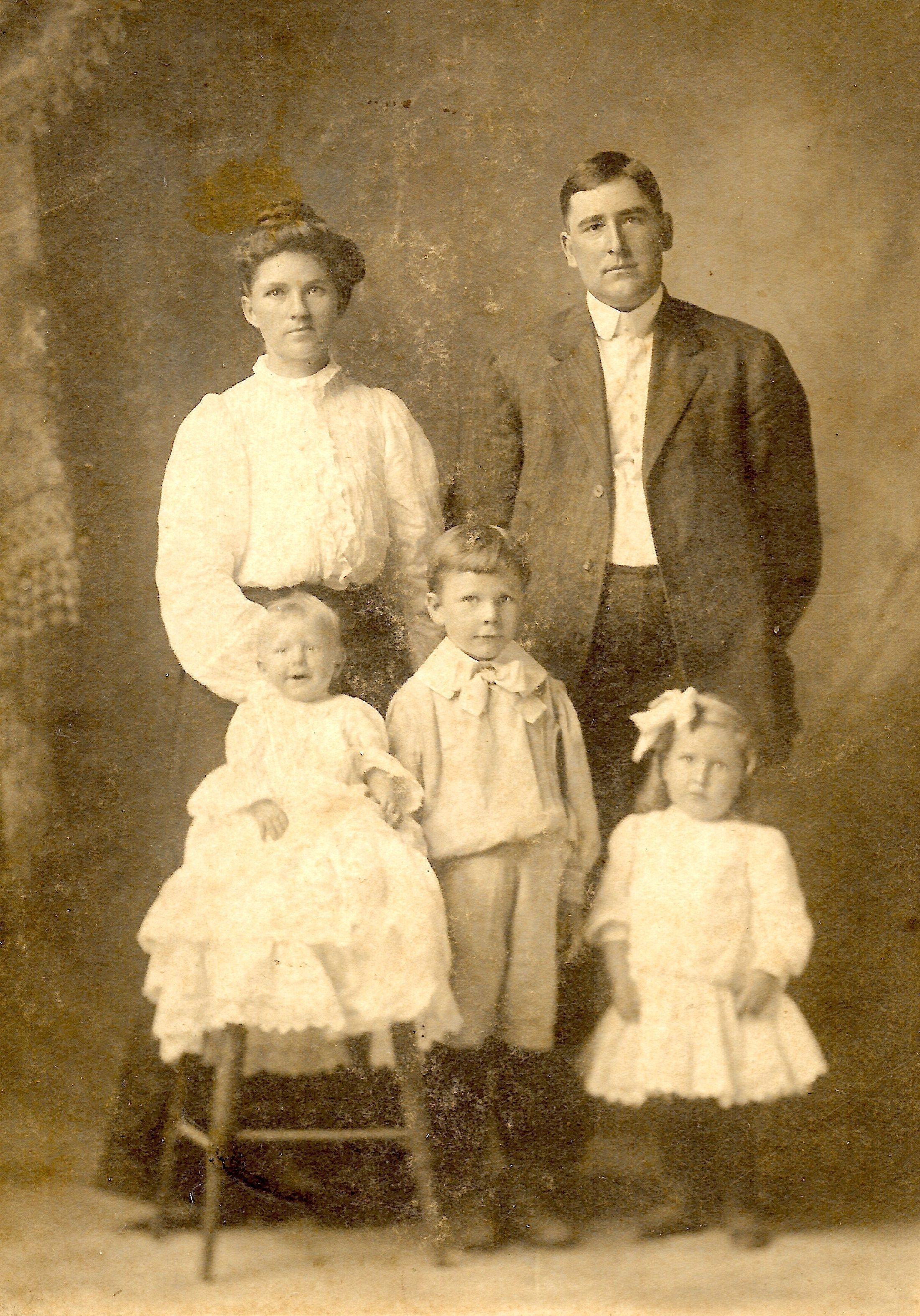 Photograph Family photograph of Bertha (Fadler) and Tom Grindstaff with their children (left to right): Glen, Julius, and Blanche.