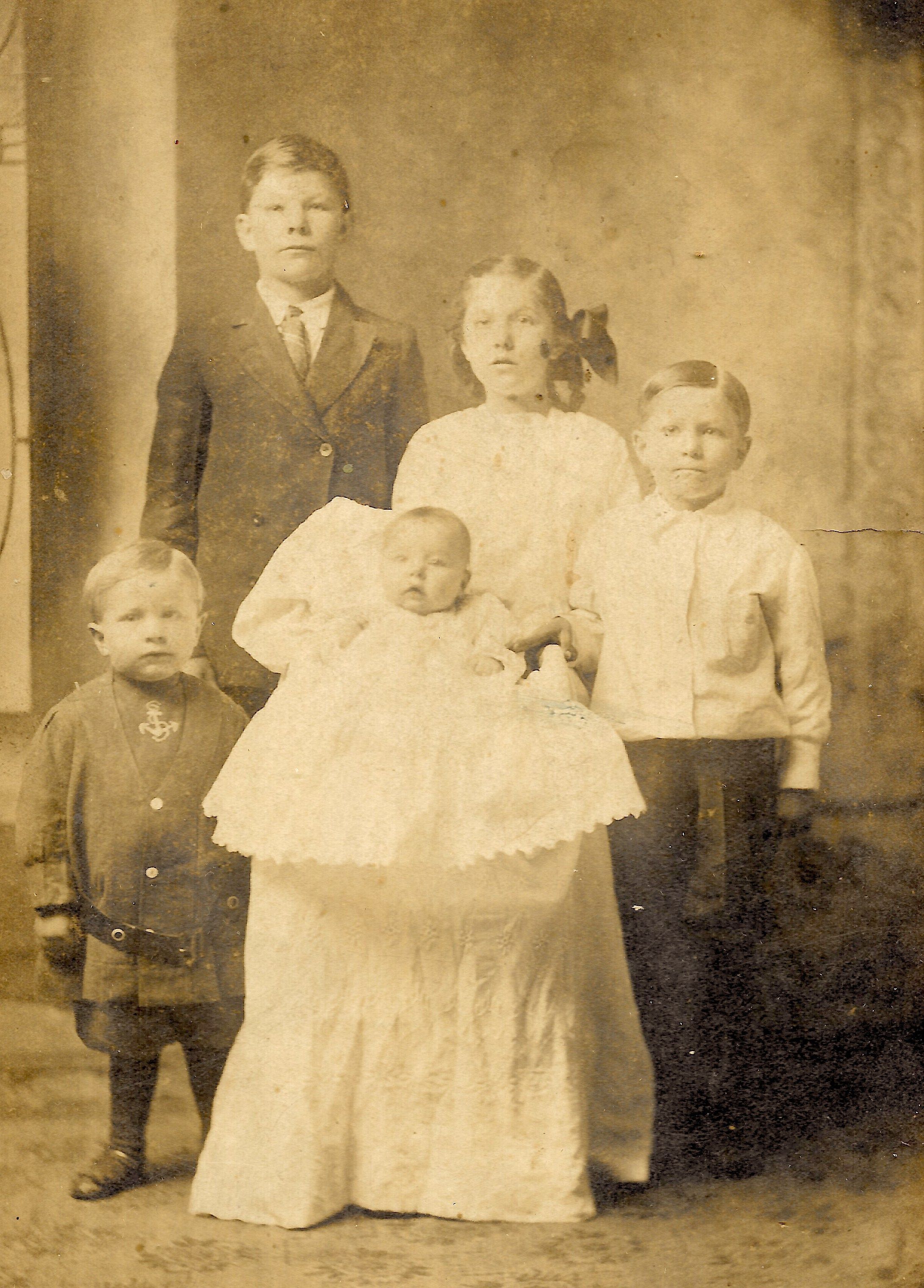 Photograph of Julius, Blanche, Glen, Clyde as children with infant Grace.