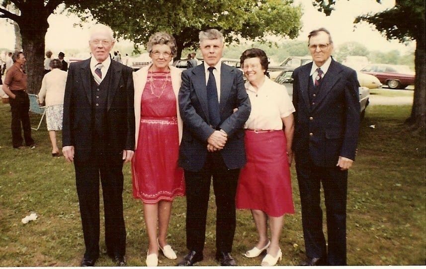 Photograph of Lawrence, Velma, Lester, Viola, Luther Fadler at the Patton Methodist Church Cemetery, early 1980sCollection