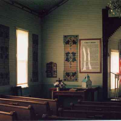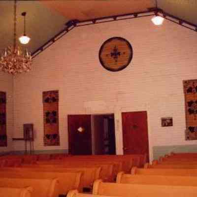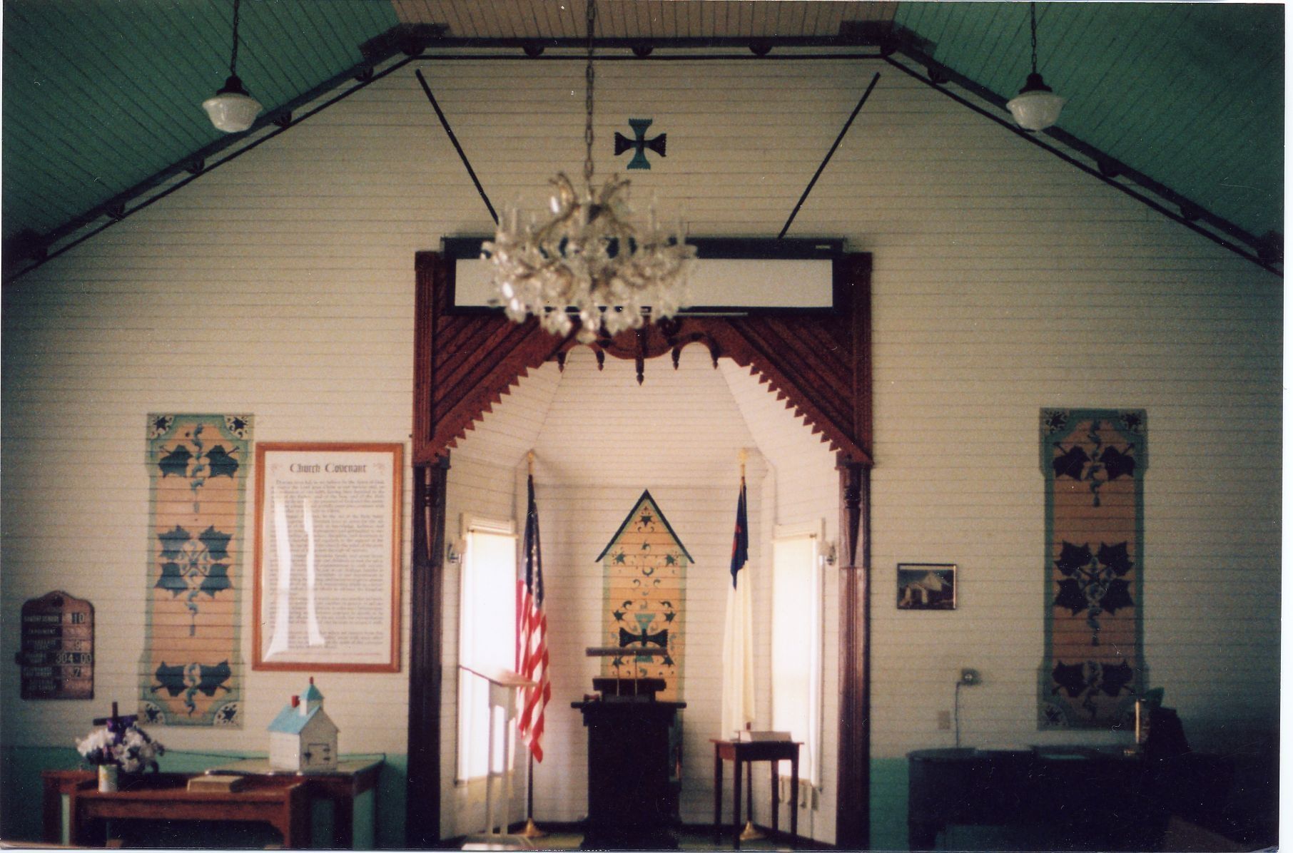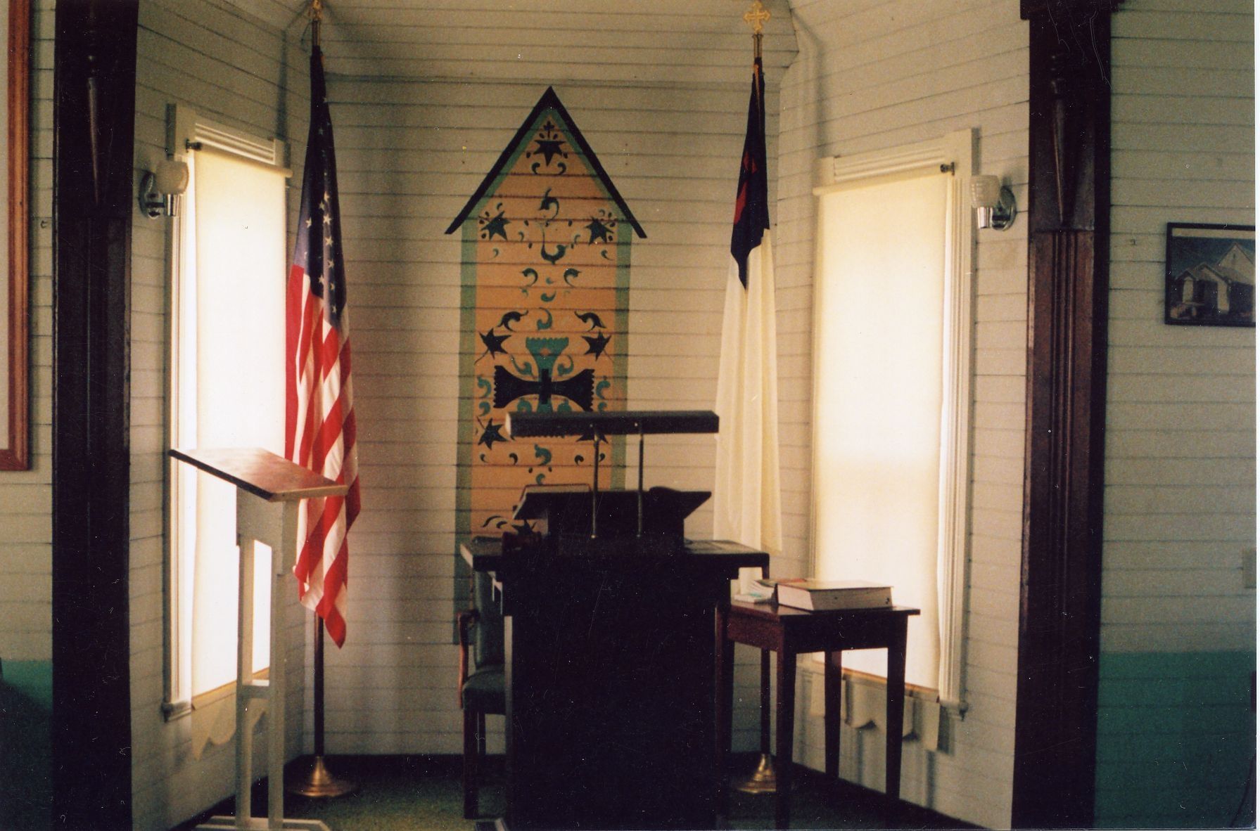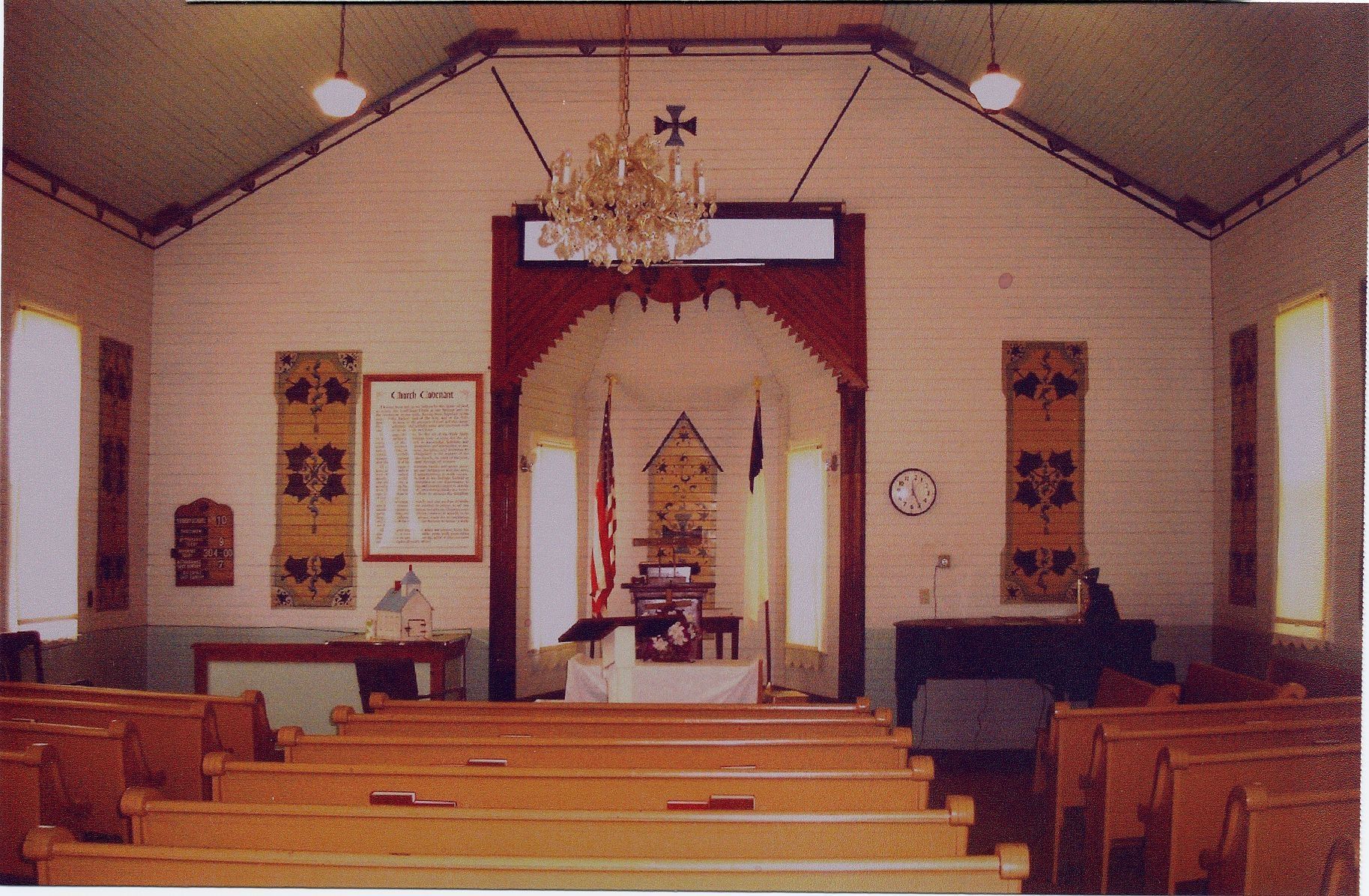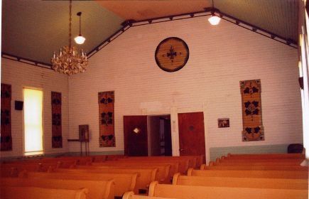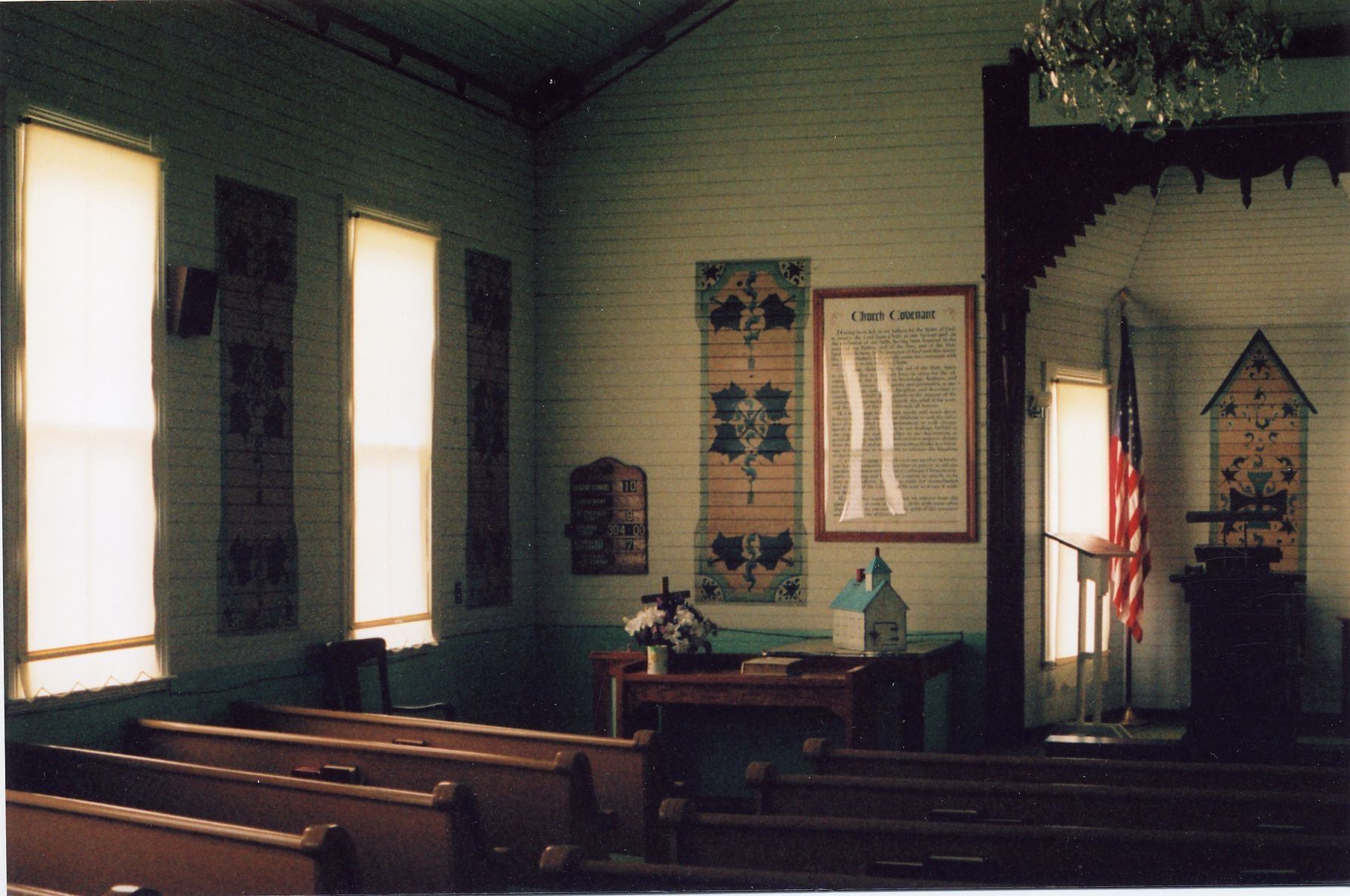 Front of chapel with sign "Millers Chapel Missionary Baptist Church 1895"