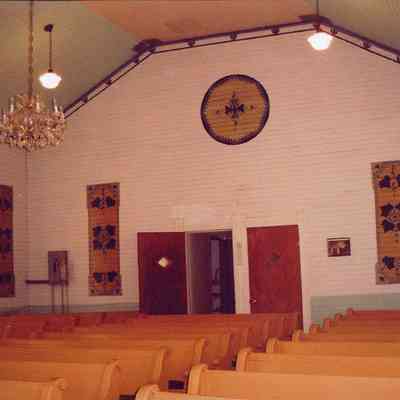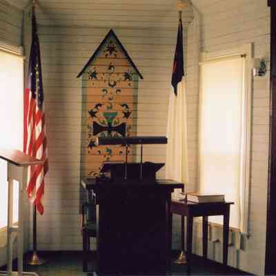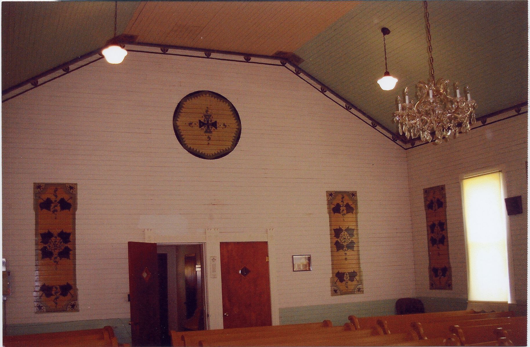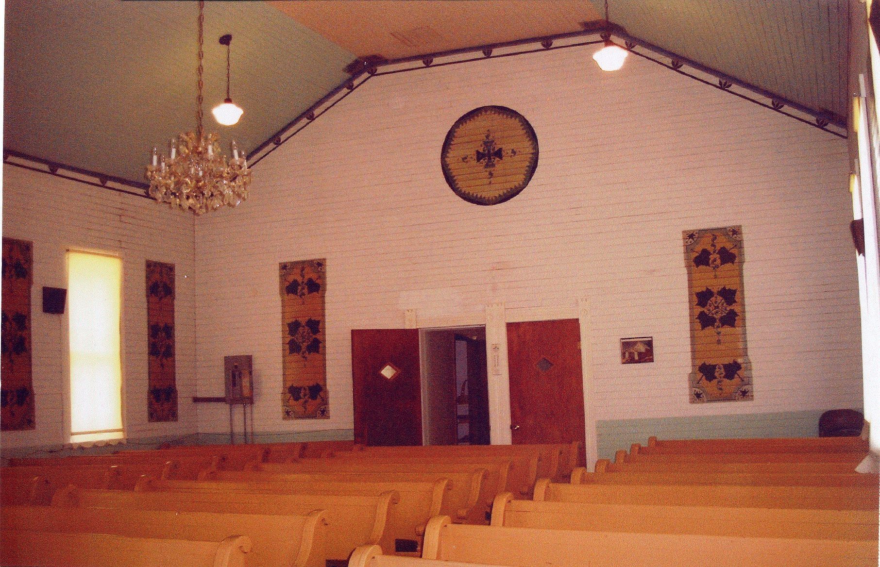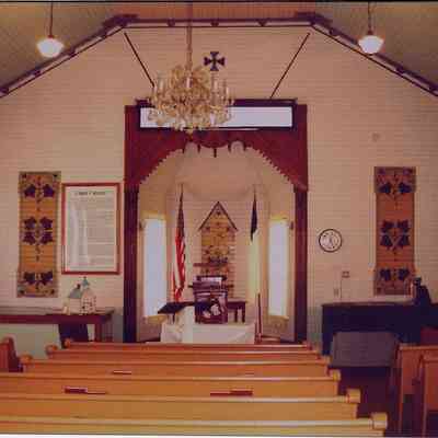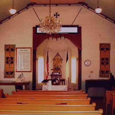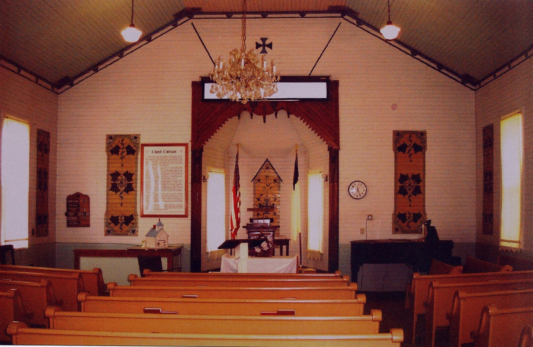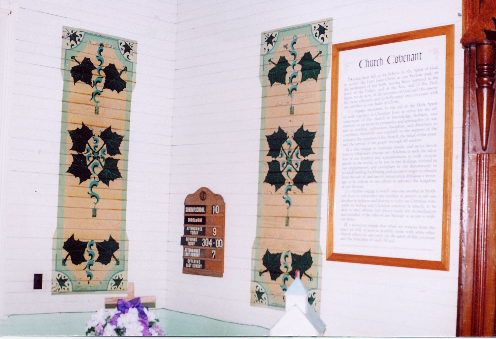 Front of chapel with sign "Millers Chapel Missionary Baptist Church 1895"