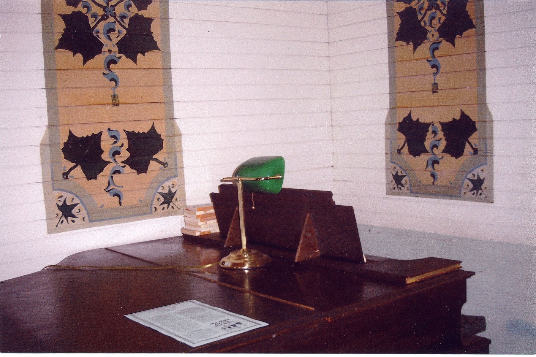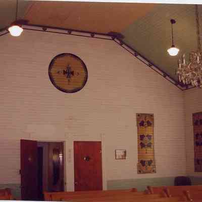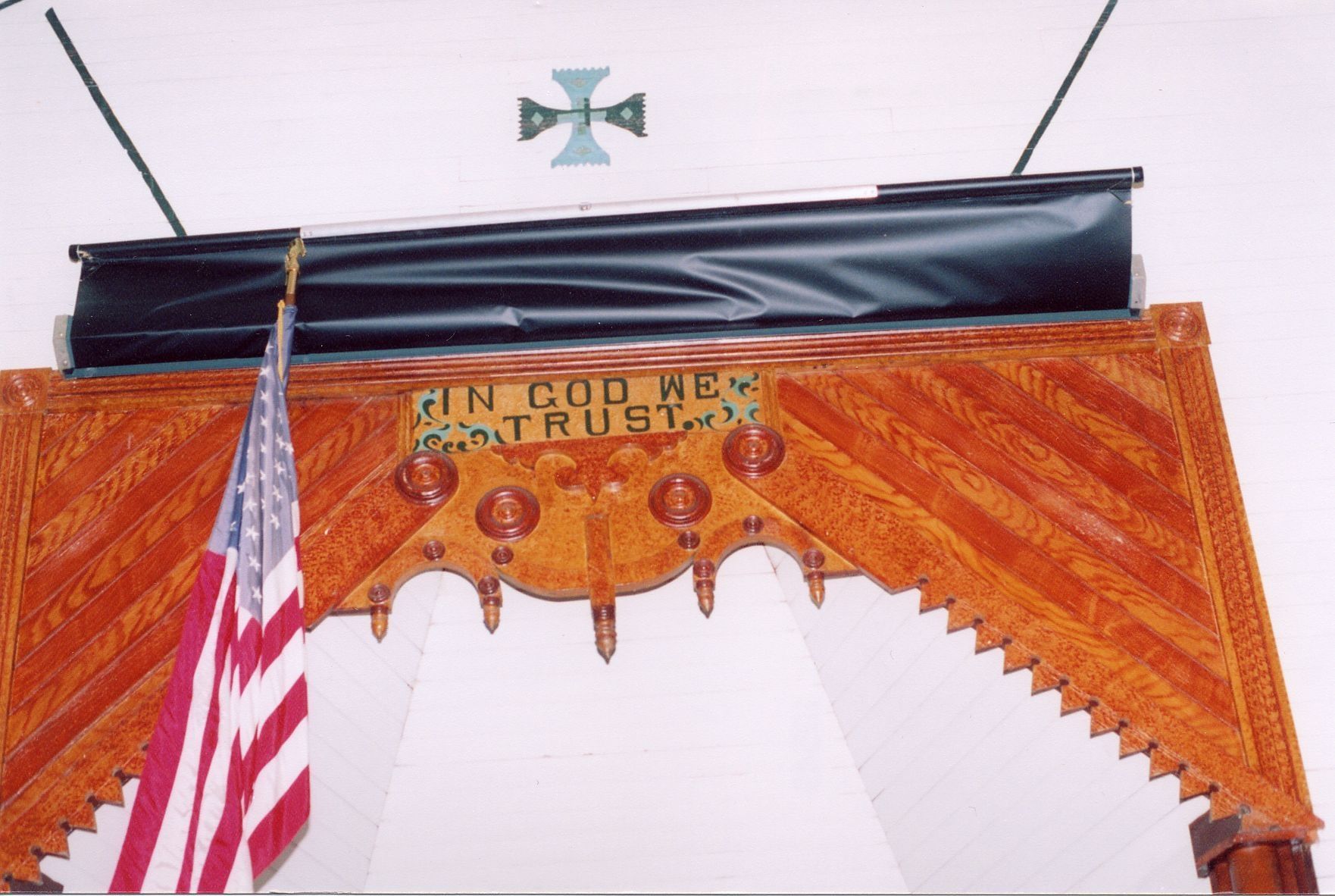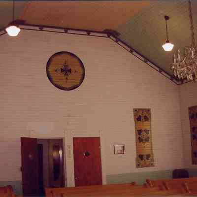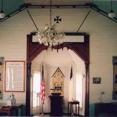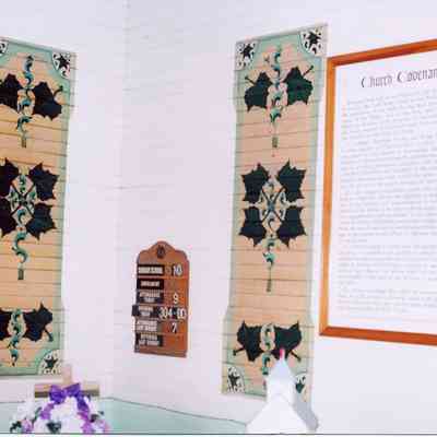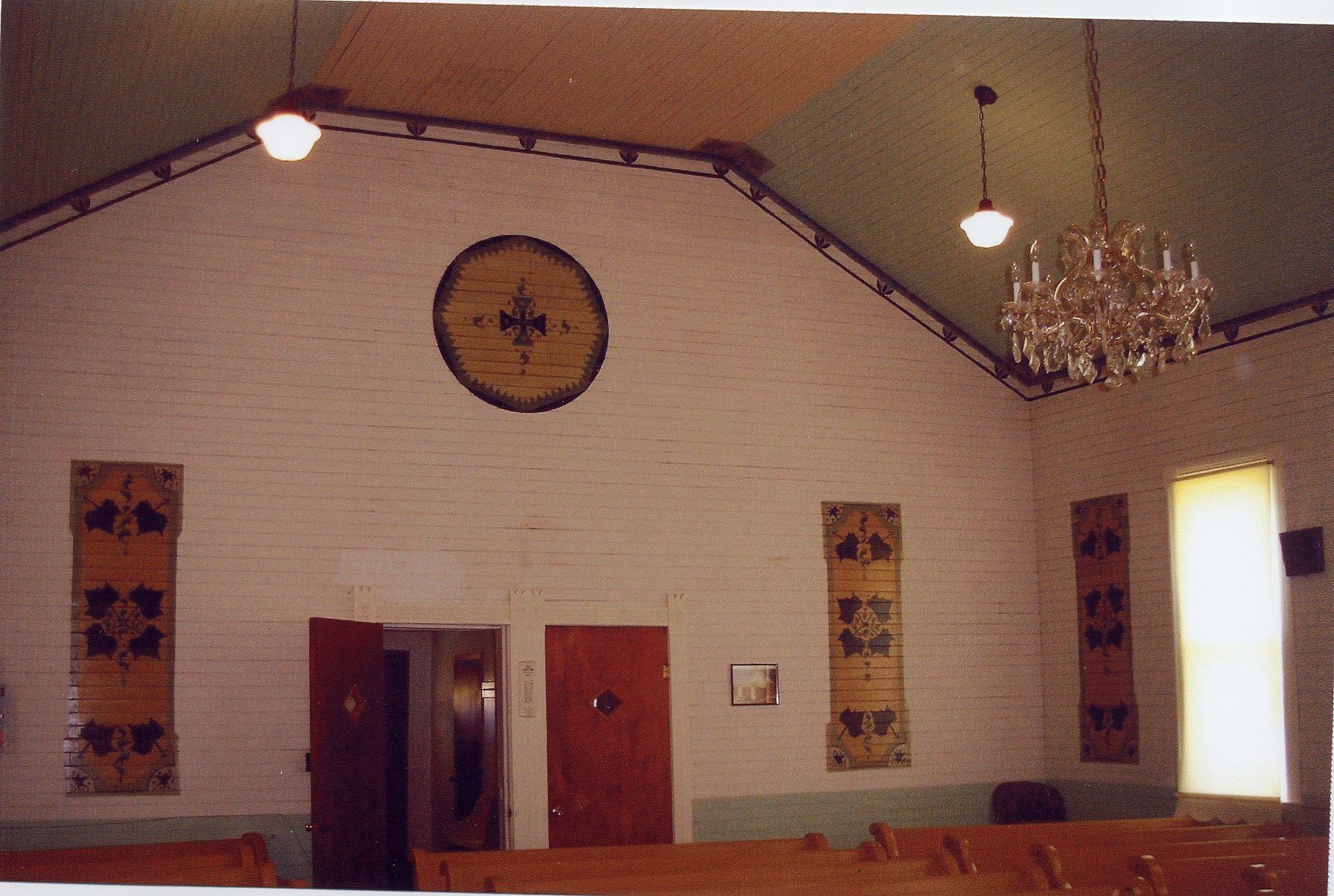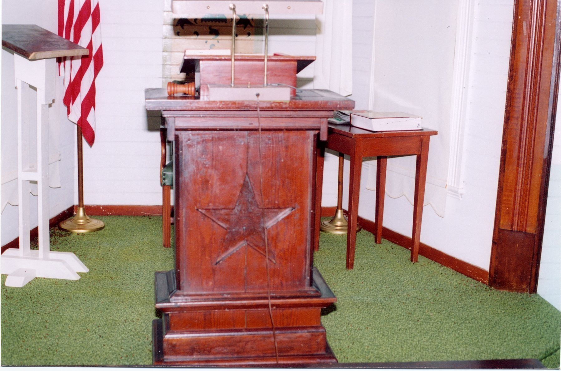 Front of chapel with sign "Millers Chapel Missionary Baptist Church 1895"