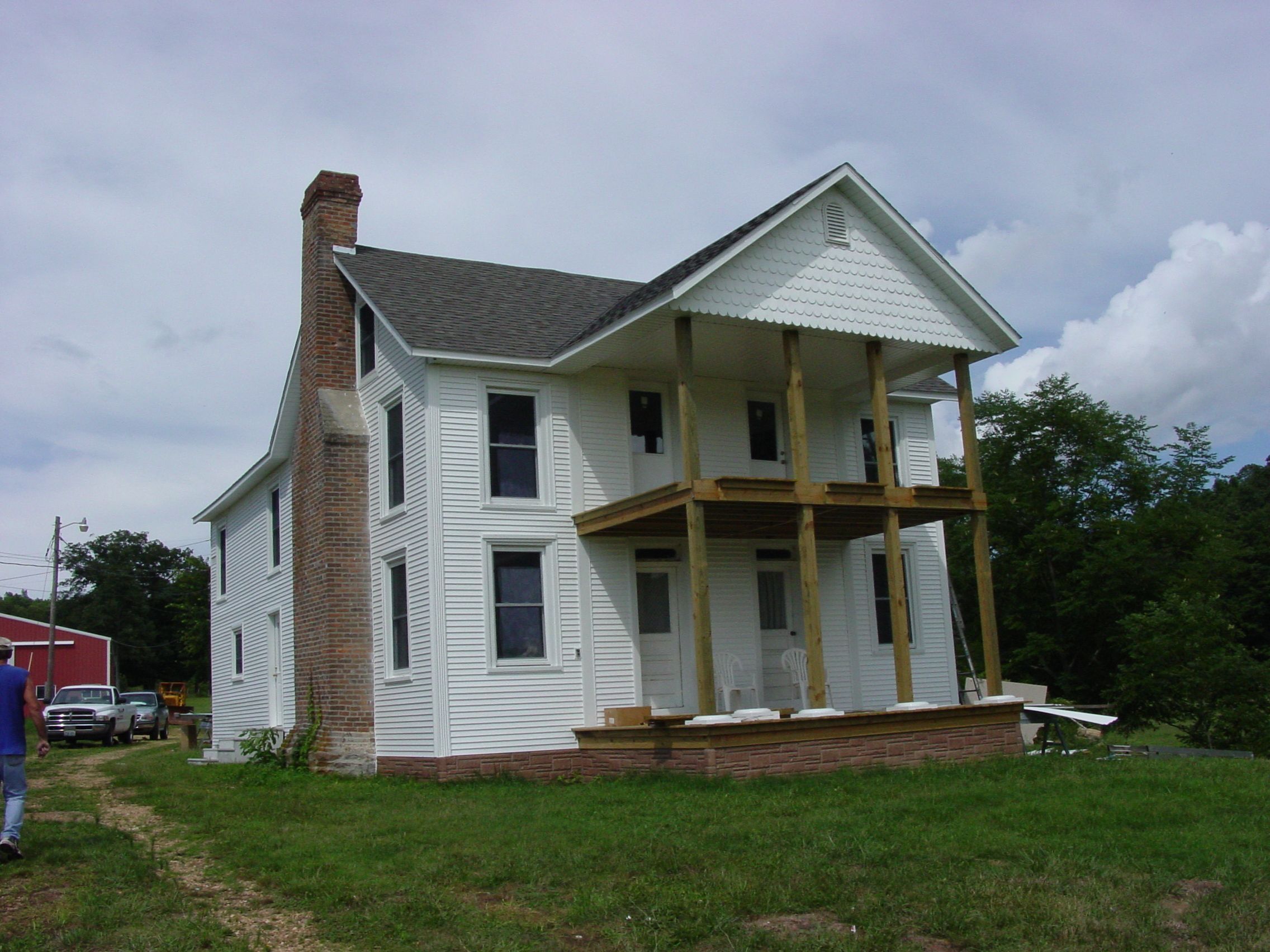 Photos of the exterior and interior of the modern-day McMinn house during its restoration in 1994. HWY 34 Greenville to Jackson road, part of the Benge route, ran between the McMinn house and the Buchana School. The McMinn house was a witness structure to the Benge trail. The fireplace shows the age of the structure, which was once a log structure.Acquisition