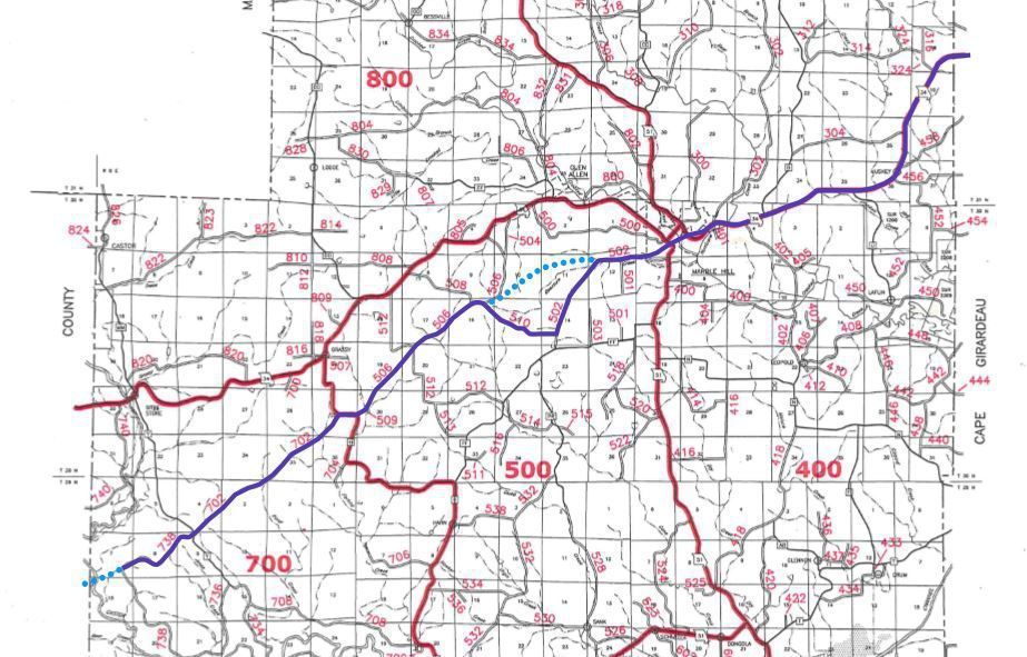 SEMO Regional Planning County Map; Benge route marked by Eva Dunn