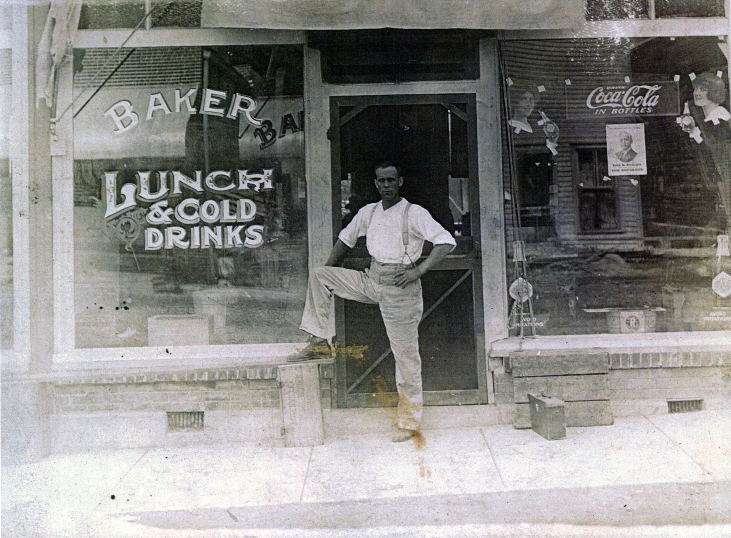 A.J. Baker in front of his restaurant.Photograph Details