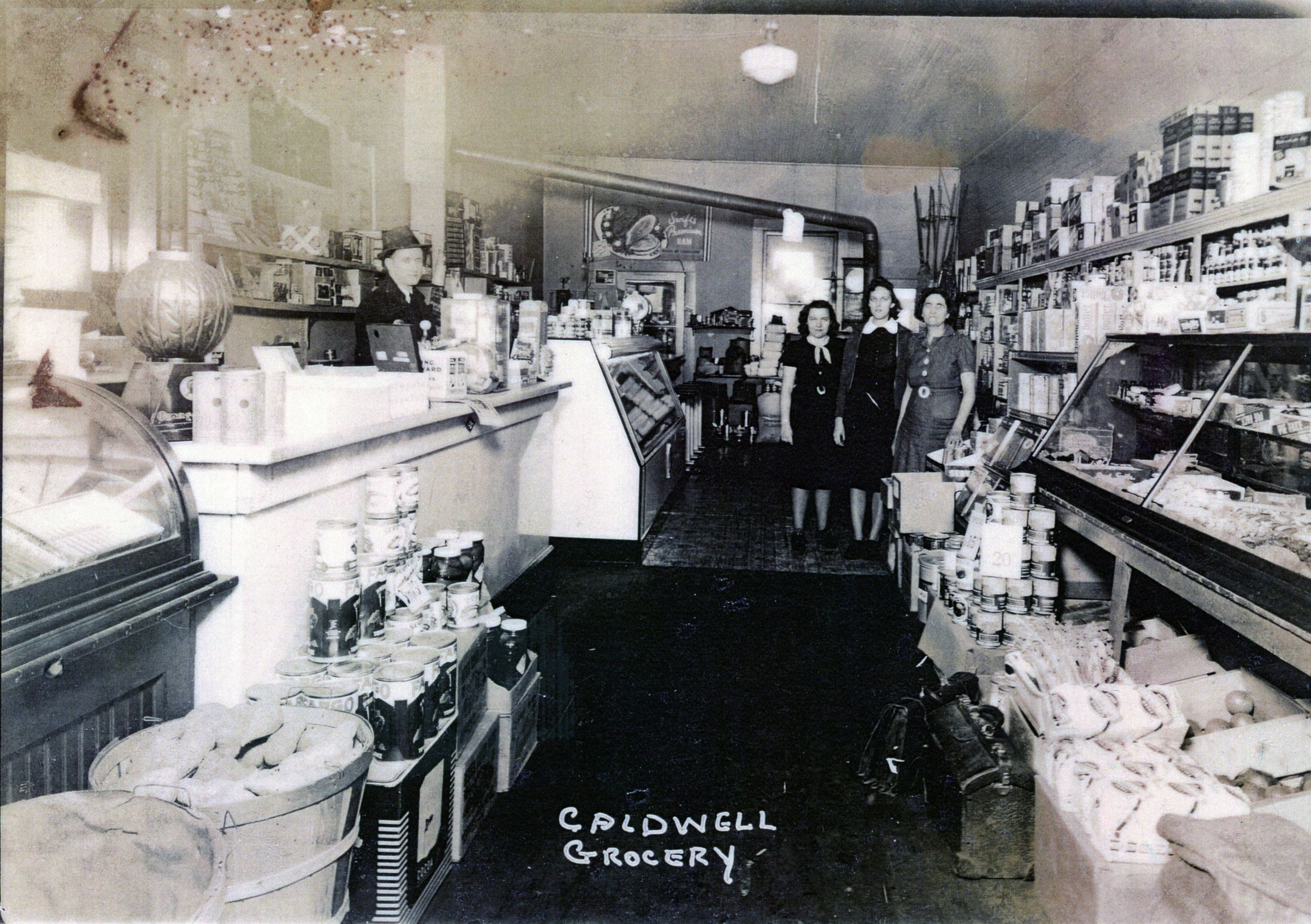 Located on First Street. left to right salesman, Mary Crader, Bernie and Elsie CaldwellPhotograph Details