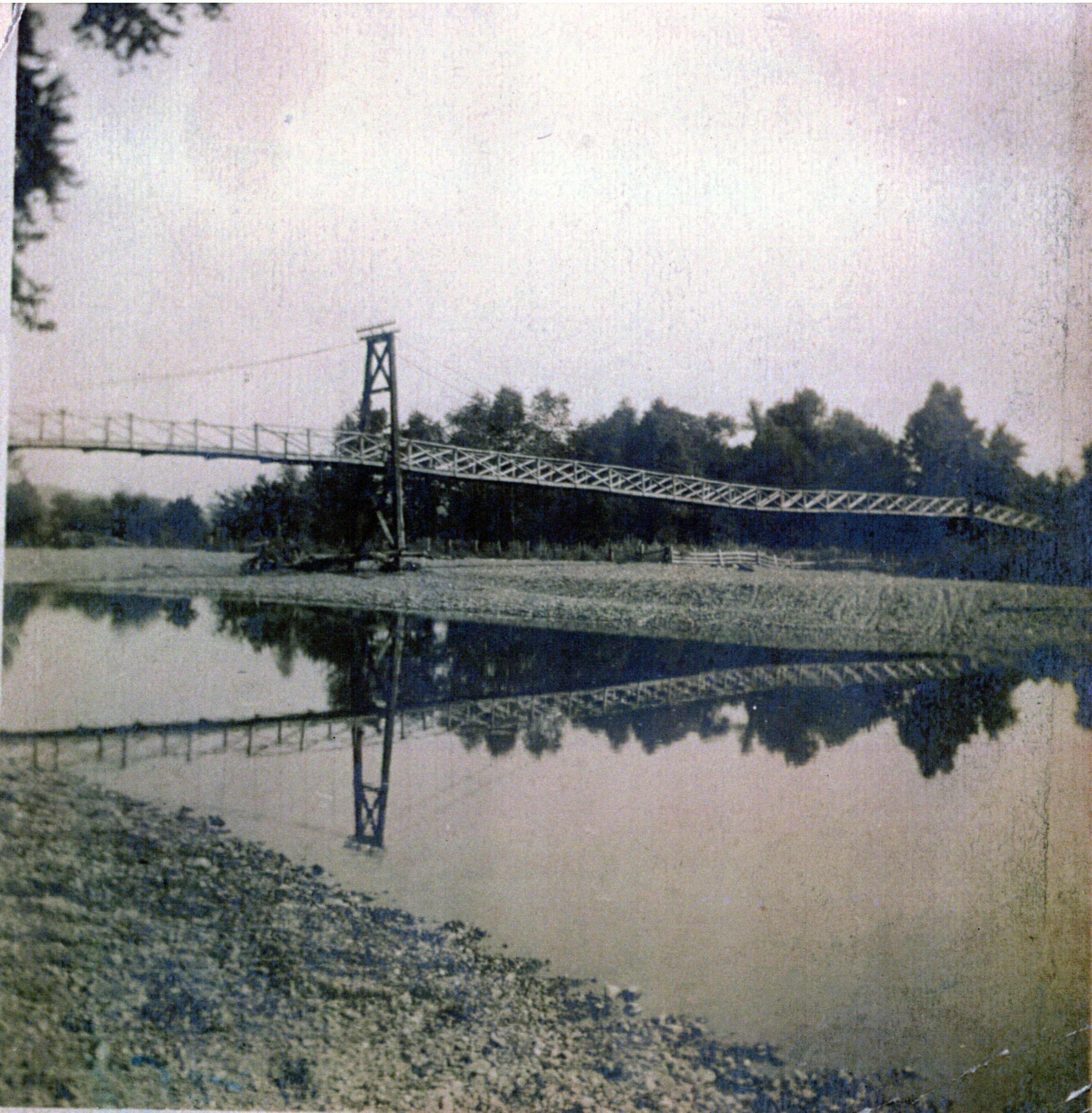 Swinging foot bridge between Lutesville from Marble Hill.