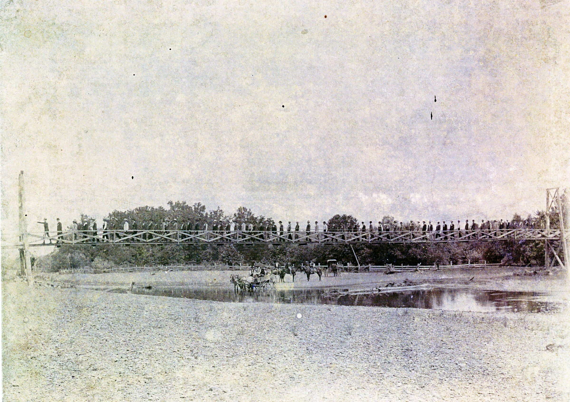 Swinging foot bridge between Lutesville from Marble Hill.Photograph Details