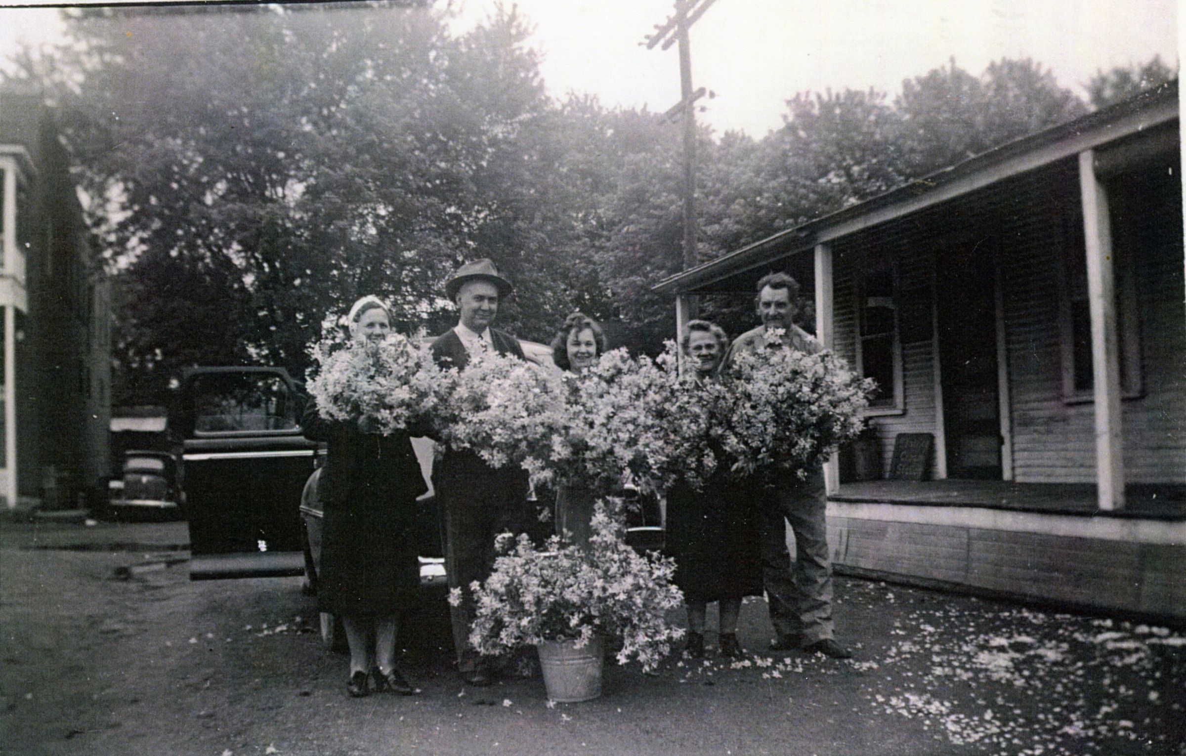 Charles, Iva, and Bessie Lutes with Mr. and (Mrs. Dines) Bess posing with flowers.Photograph Details