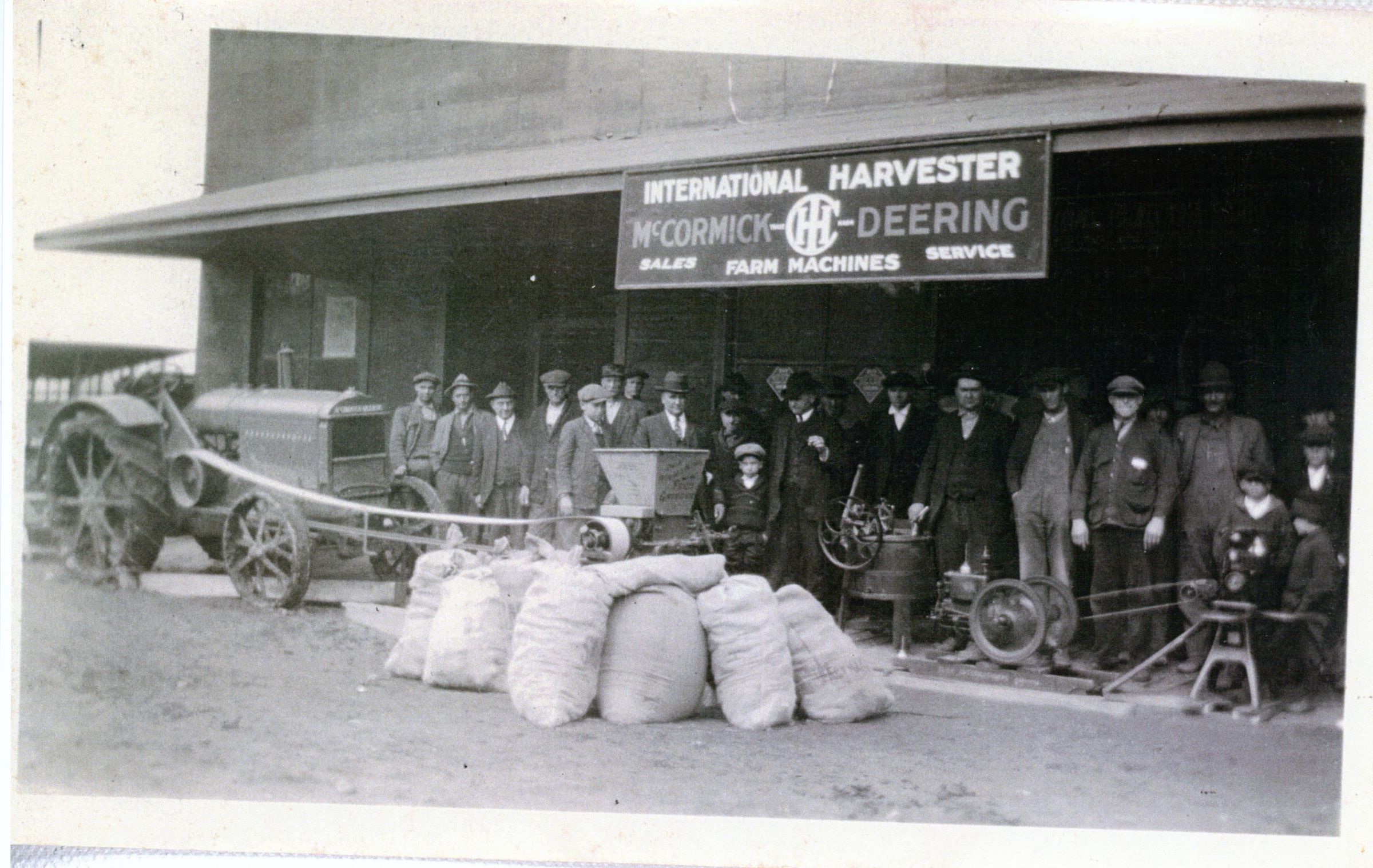 Tractor & gasoline powered engine demonstration. Notice belt driven washing machine near the center ofth picture.Photograph Details