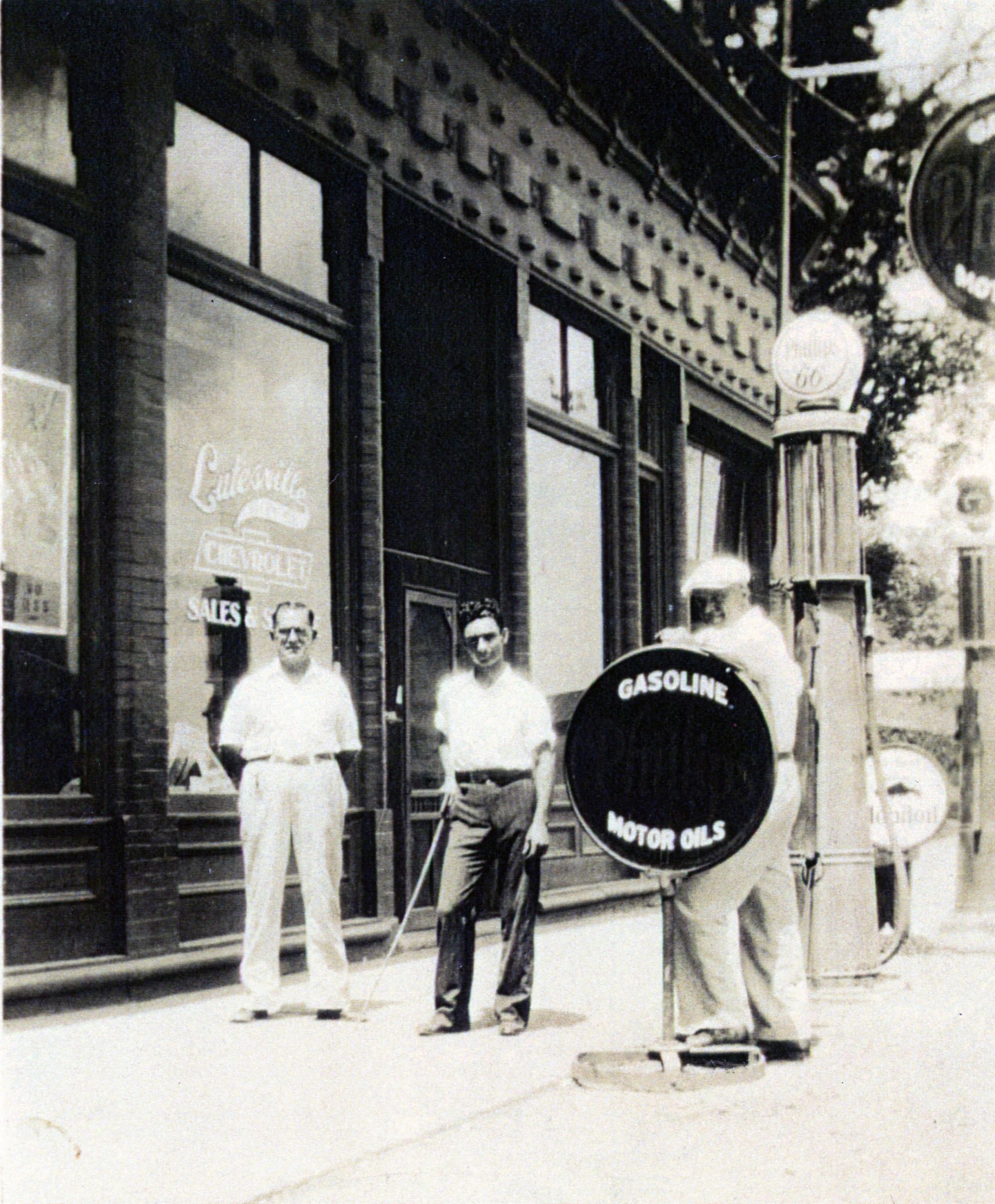 located on First Street. Pictured: Ben Burford, Sr.; Charley G. Bollinger; "Hank" Bowman.Photograph Details