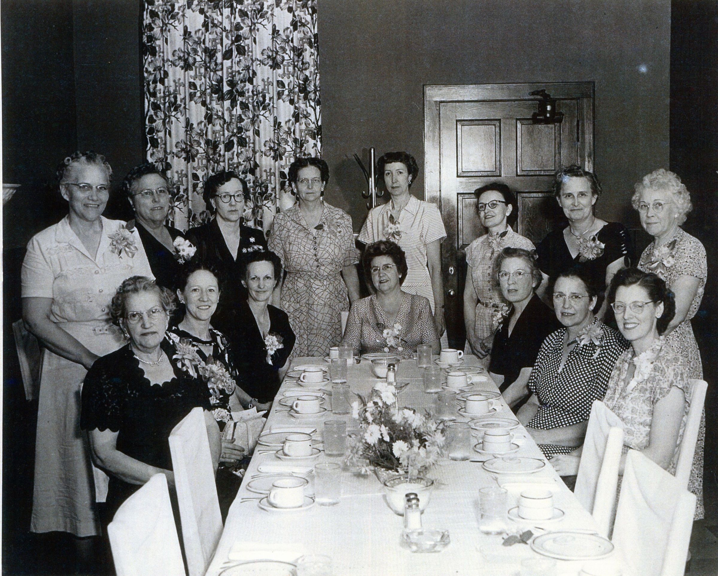 Seated left to right Mary Elfrink, Marie Van Amburg, Mary Lou Ayers, Dora Gladish, Mrs. Guy Teeters, Ruth Croft, Pauline Clubb. Standing left to right Florence Myers, Mrs. W. W. Mathews, Lill Estes, Bessie Cooper, Viva Rogers, Allene Cobble, Mae Eaker, and Maude Chandler.Photograph Details