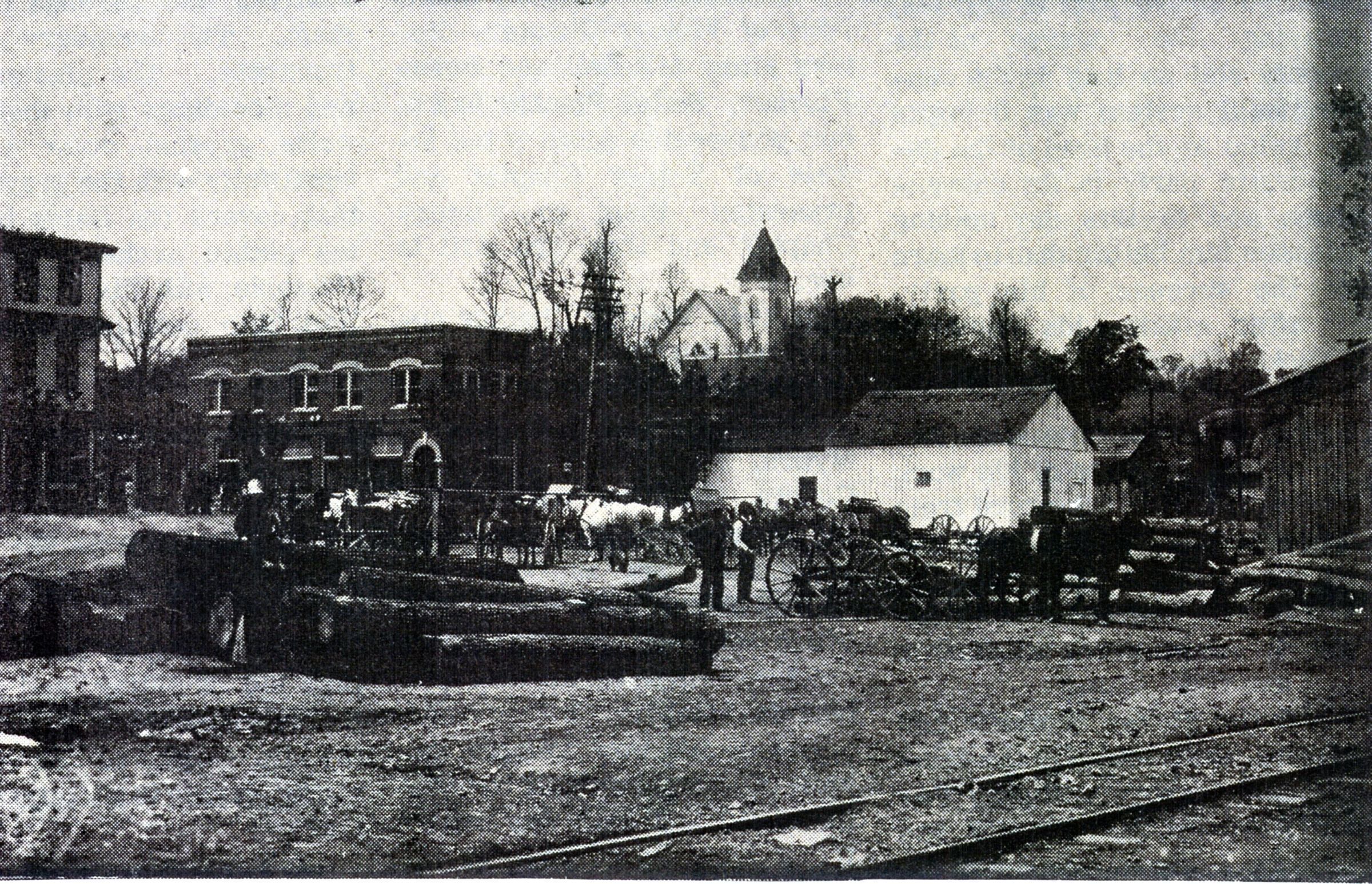 Scene from railroad with Dickey’s (Dickie’s?) Store at far left, People’s Bank at left of center and Methodist Church at top of centerPhotograph Details