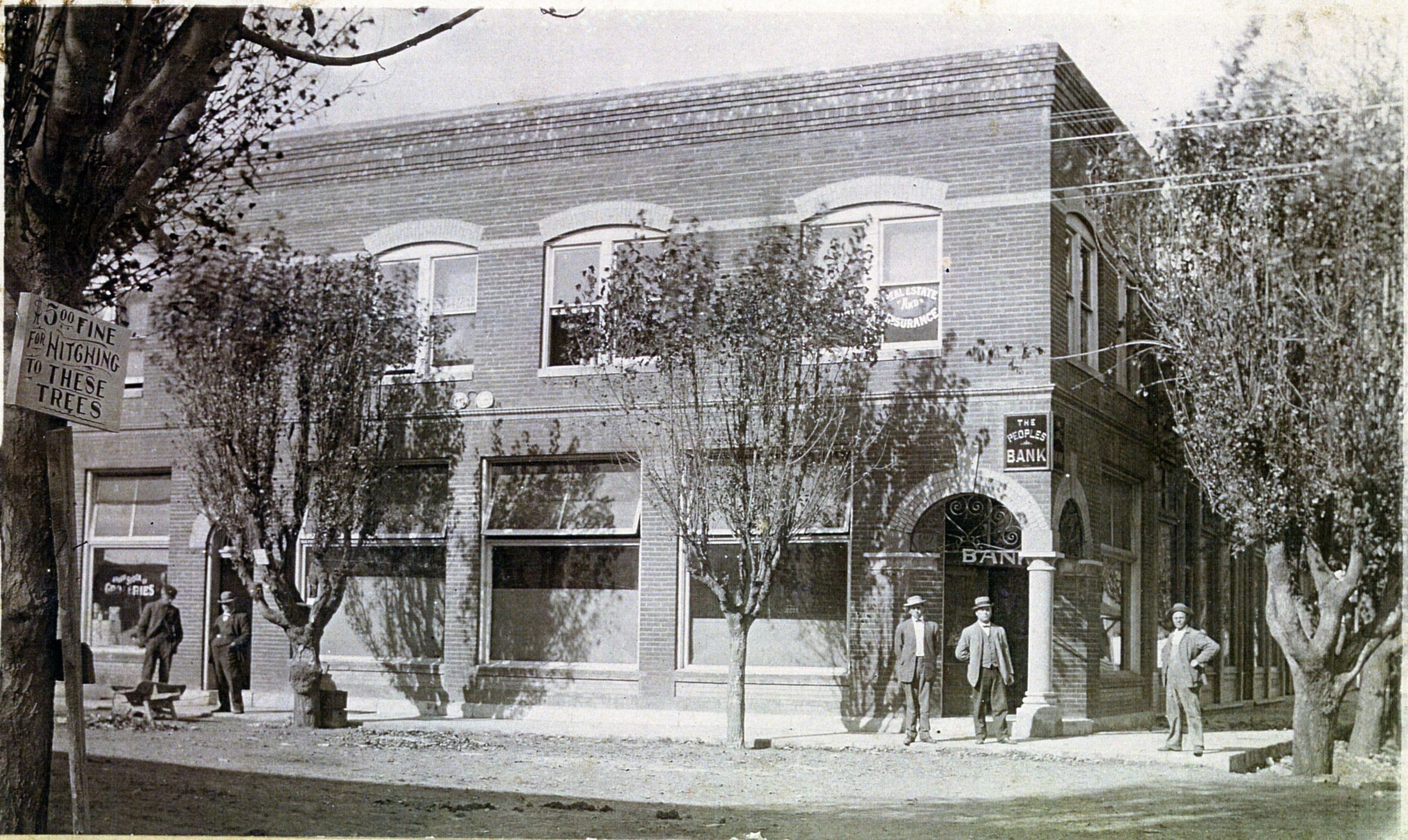 People’s Bank with real estate and insurance office upstairs. Sign on