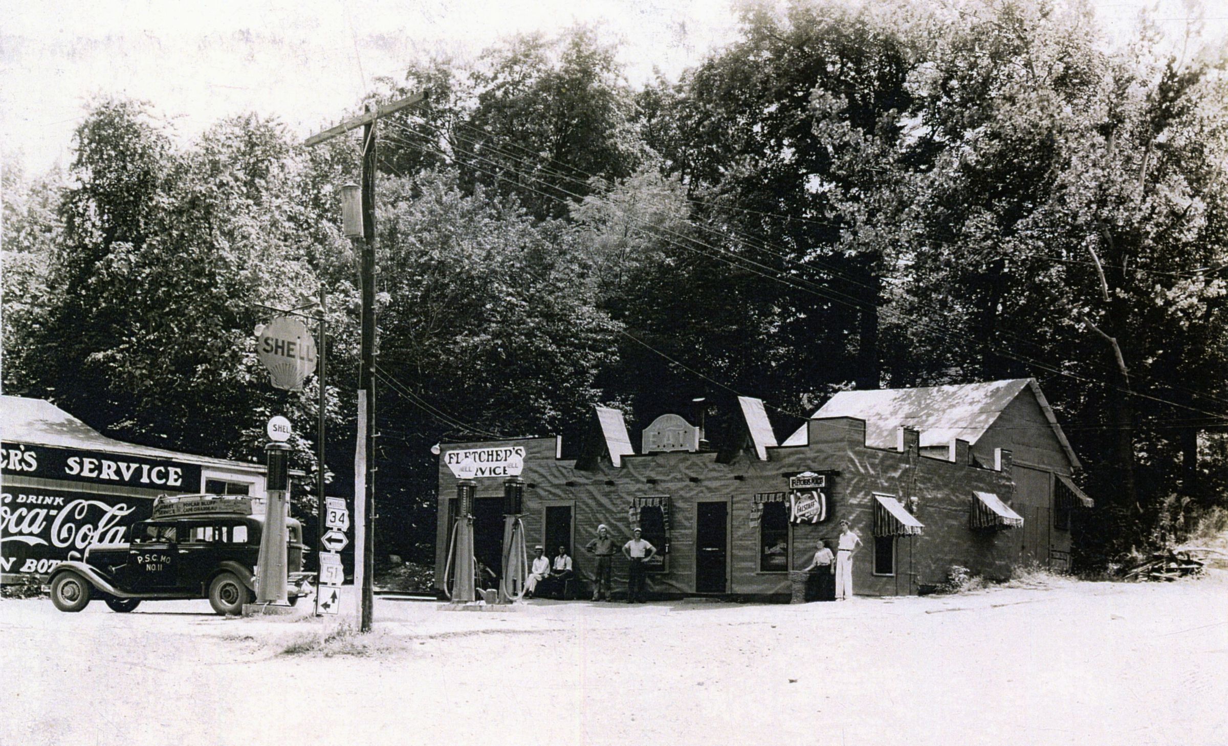 Leo Fletcher’s service station and restaurant at First and Main Street at the 4-way stop.Photograph Details