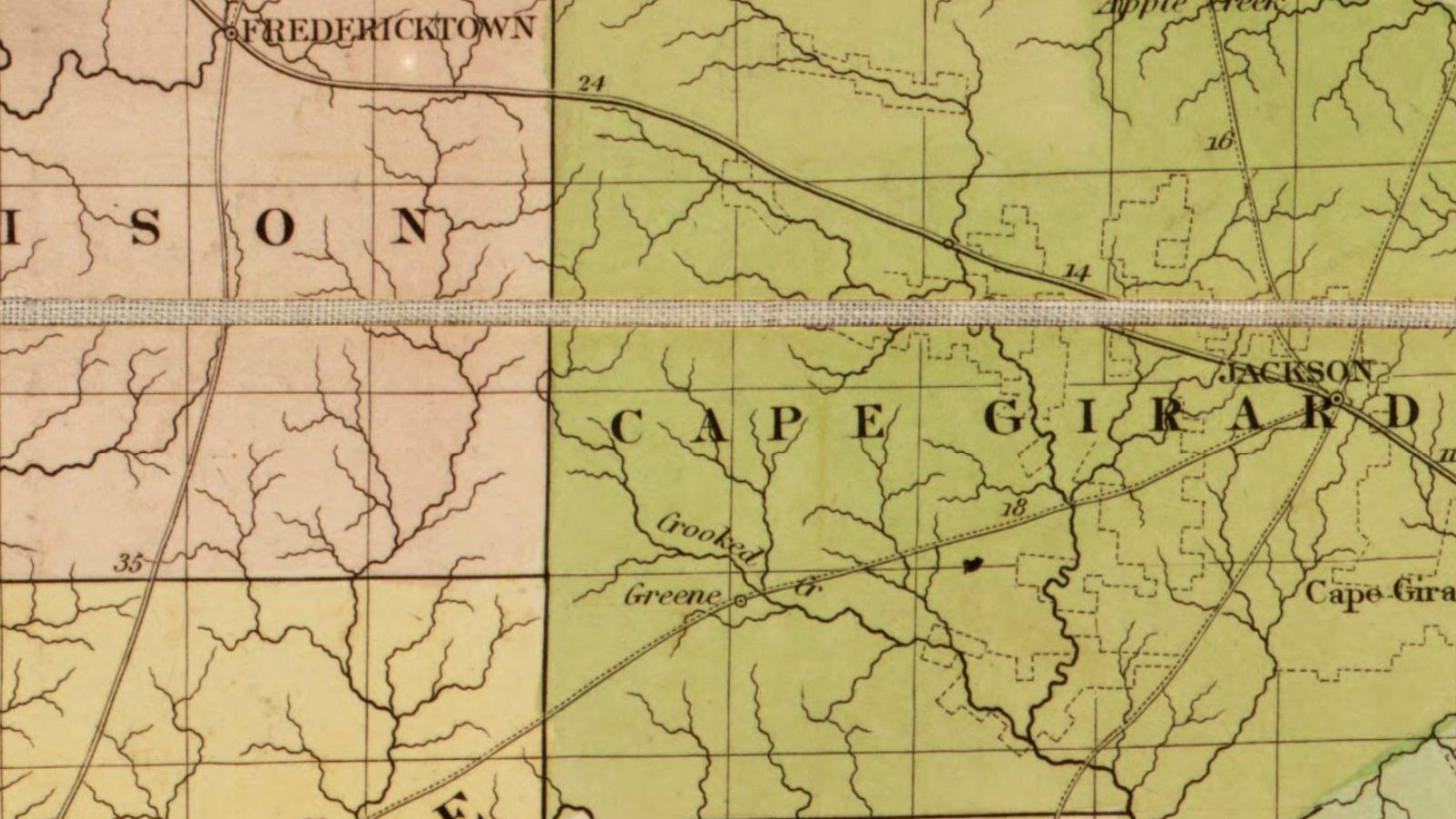 Scanned section of the 1839 Burr map showing the postal road from Jackson to the Greene (now Marble Hill) post office and southwest to Greenville.Acquisition
