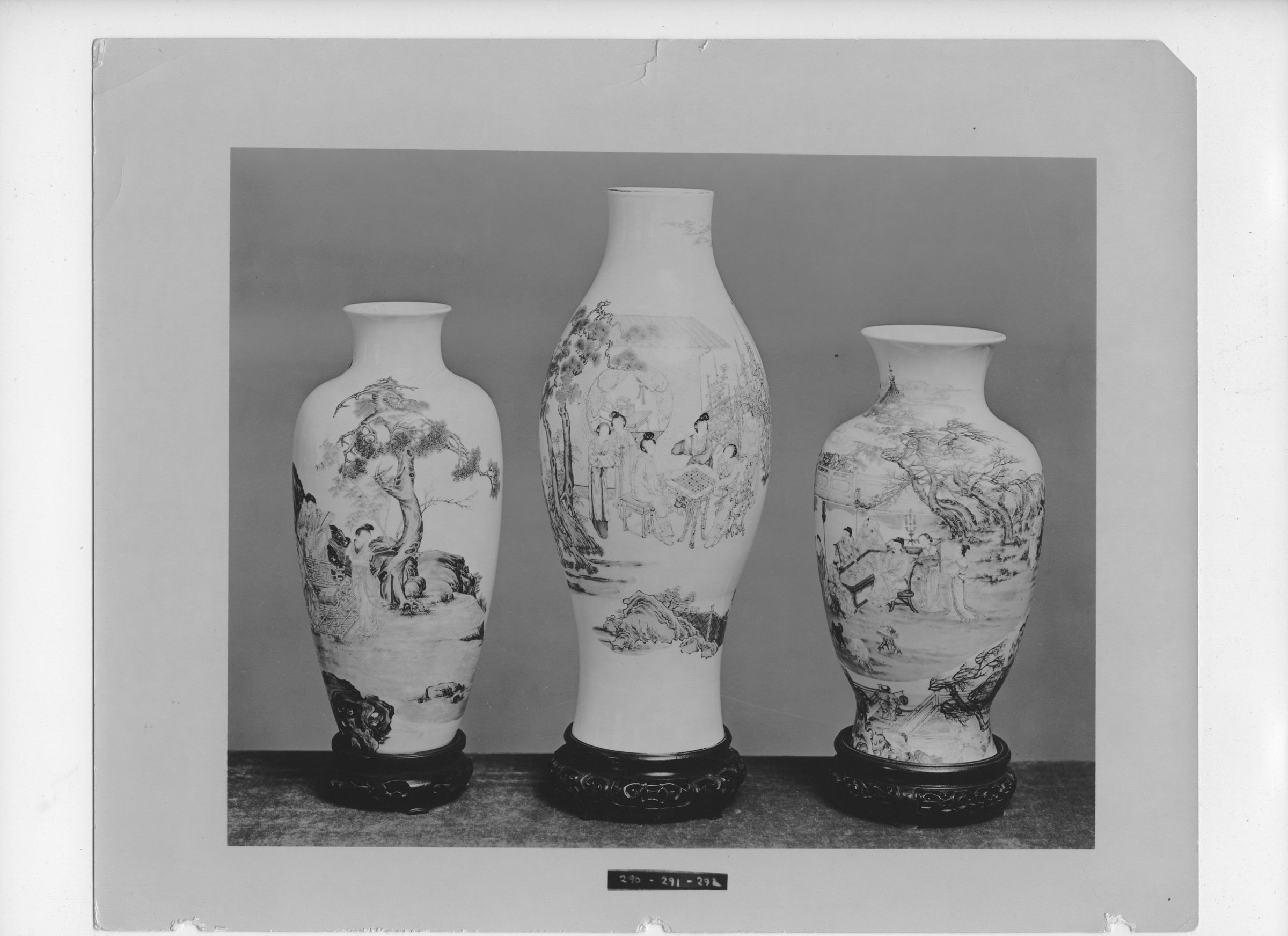 3 vases w/ Japanese motif resting on three small wooden basesCreate Date