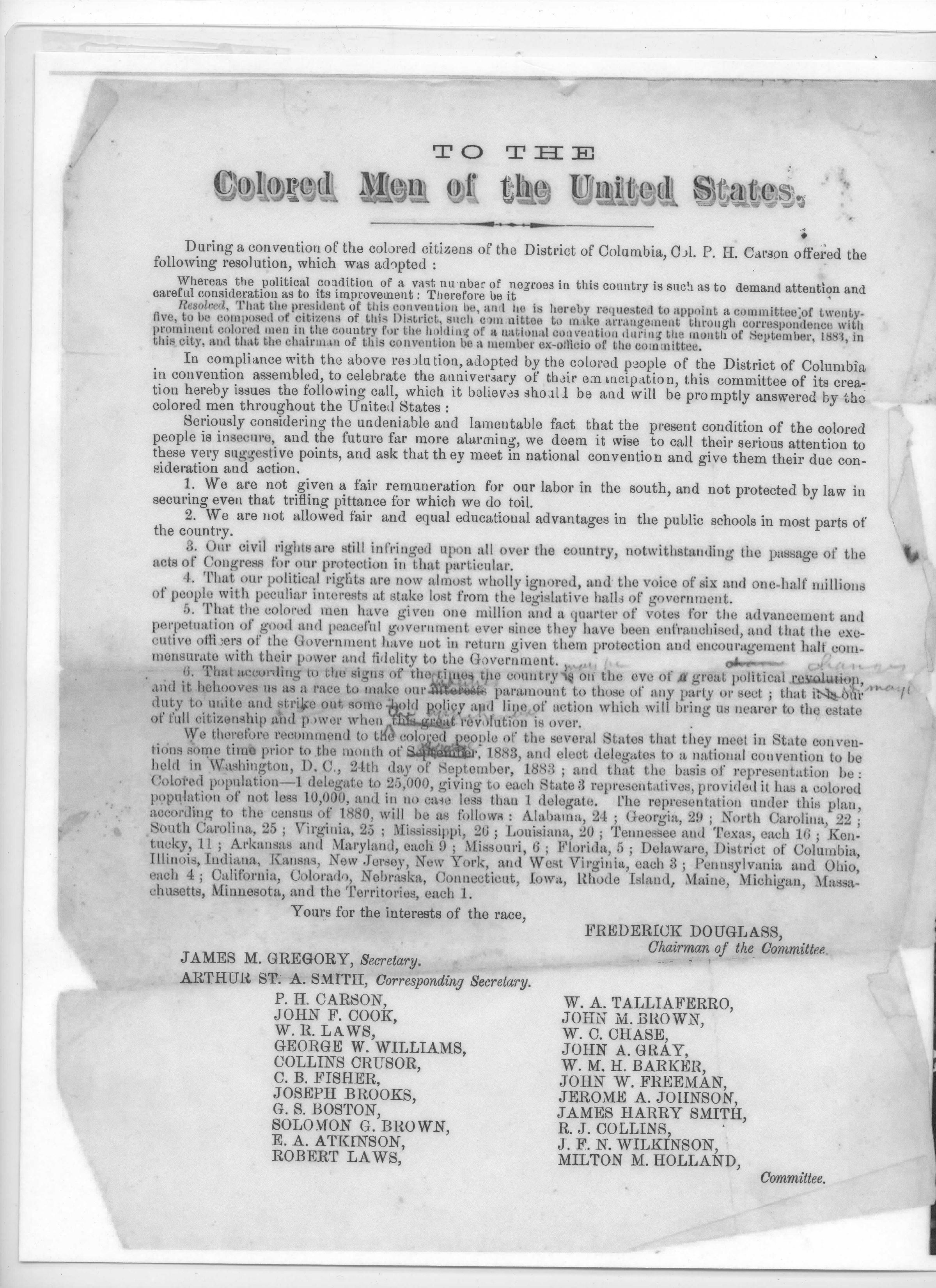Declaration by Fredrick Douglas "To the Colored Men of the United States"Entry/Object ID