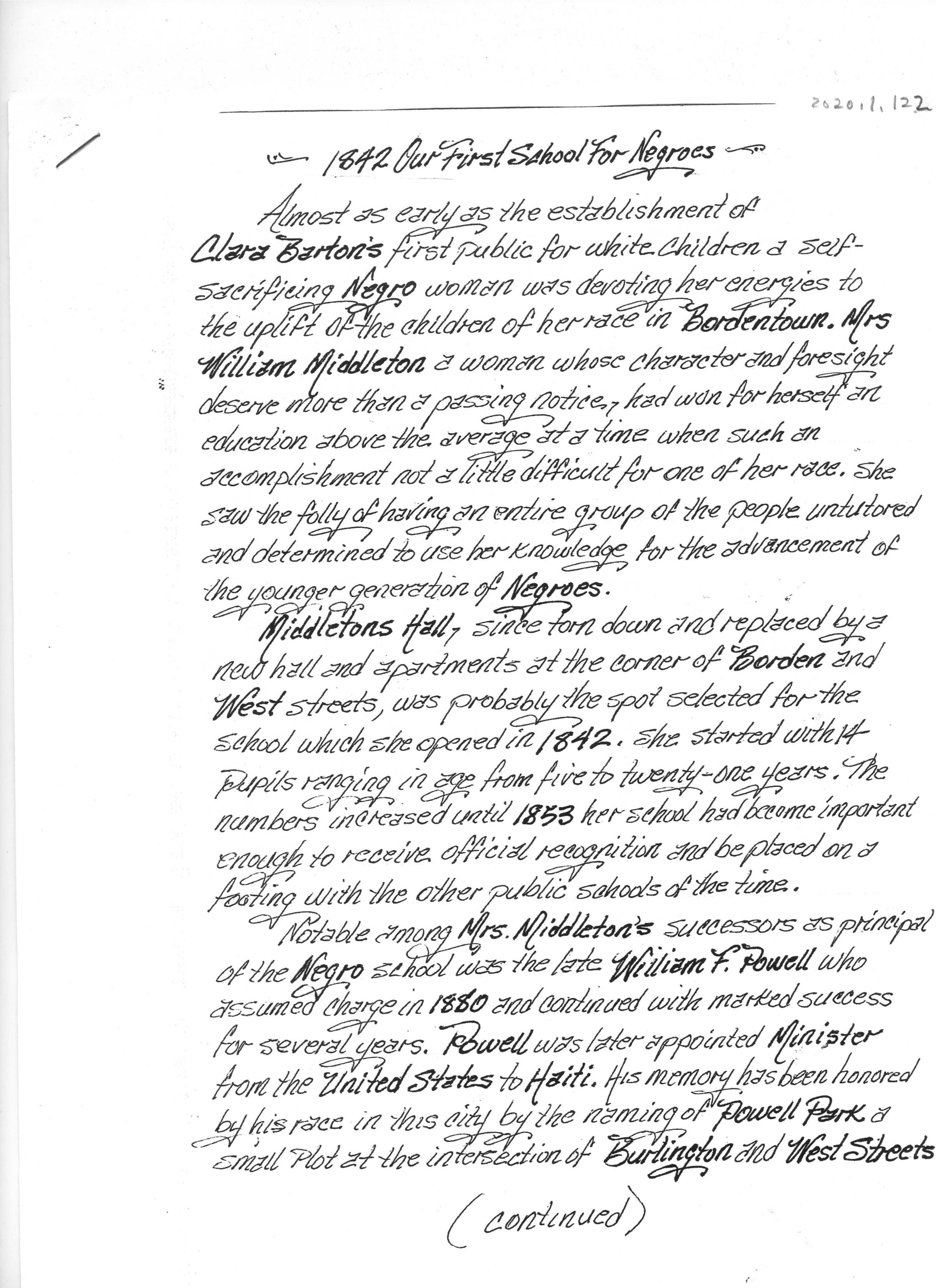 1842 Our First School for Negroes Article (2 PAGES)Create Date