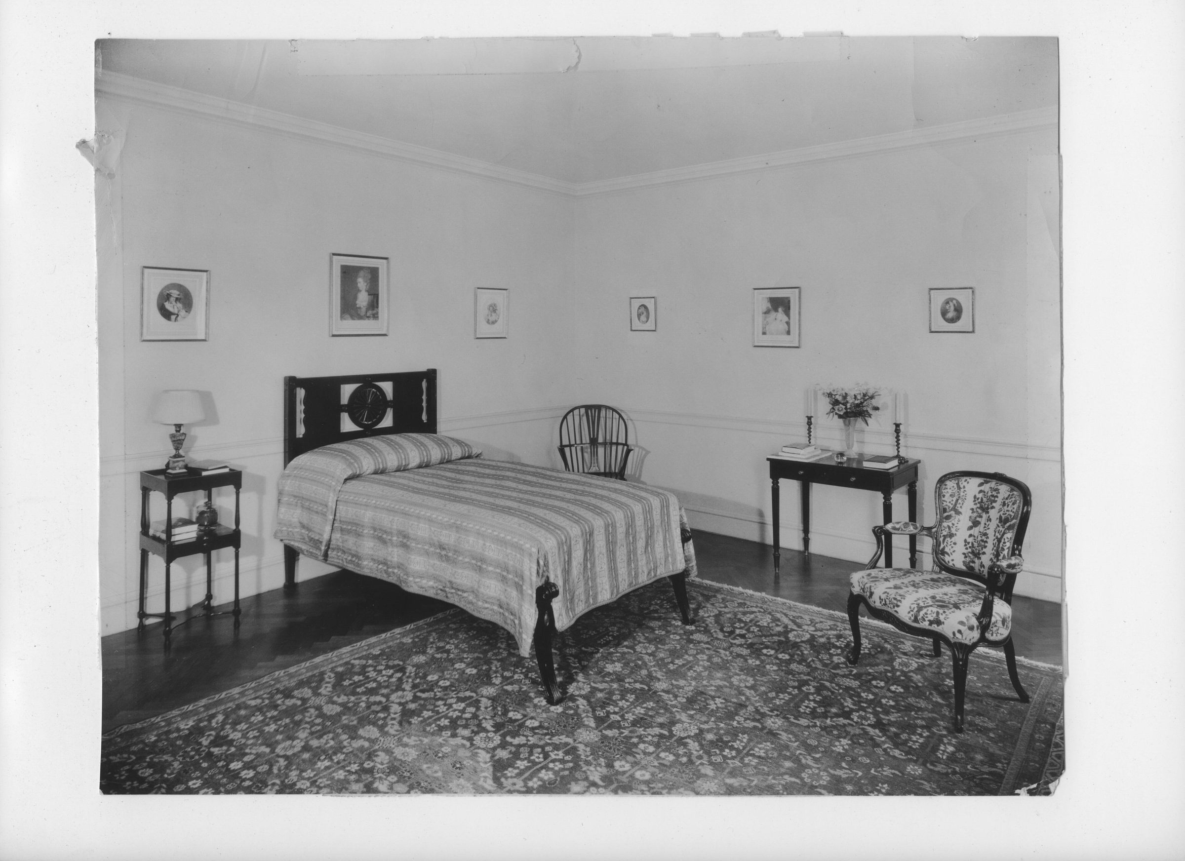 Hammond mansion bedroom with bed, chairs, and paintingsPhotograph Details