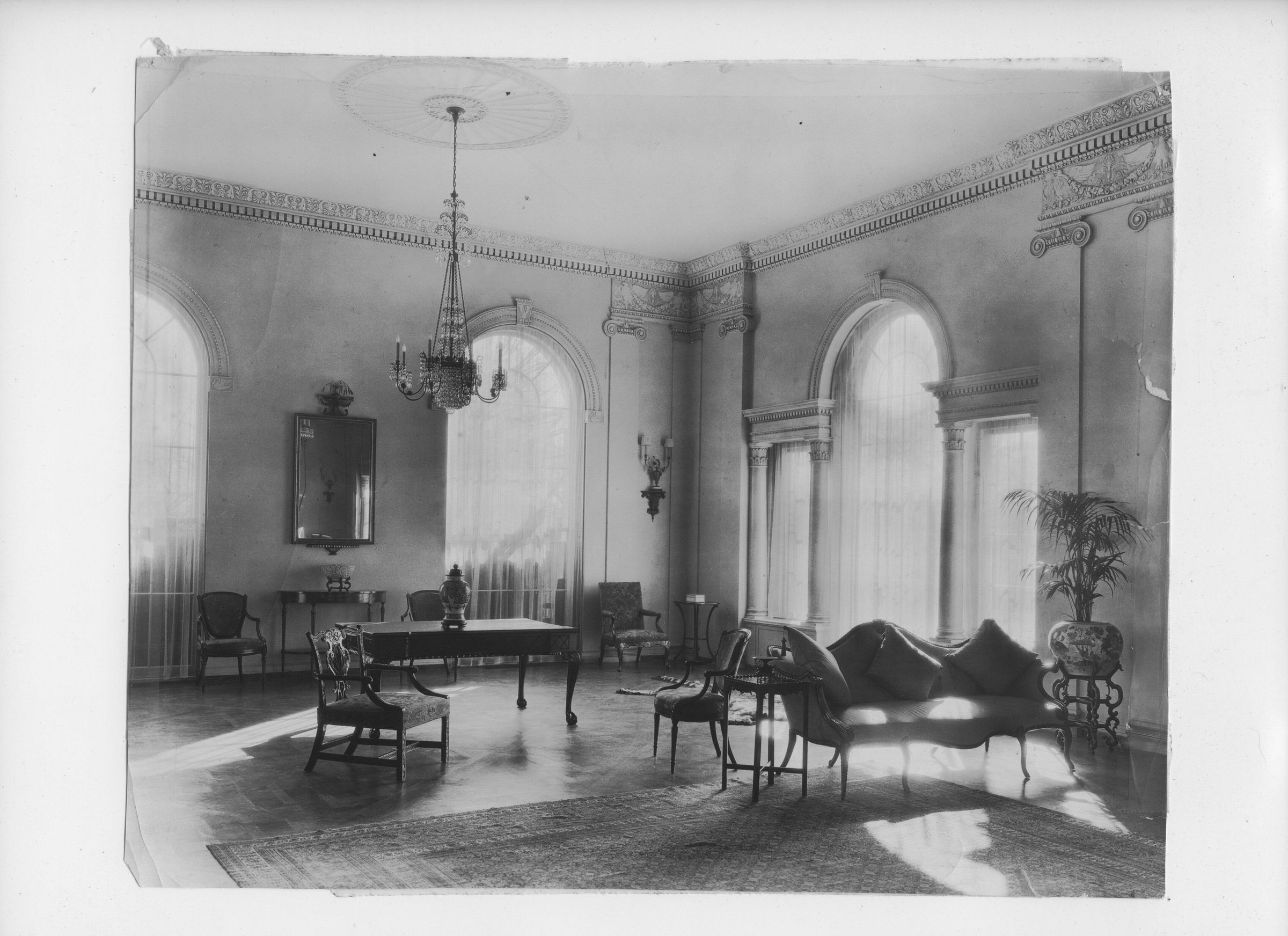 Large Interior Room with Chandelier, Urn on Table, and More Victorian DecorPhotograph Details