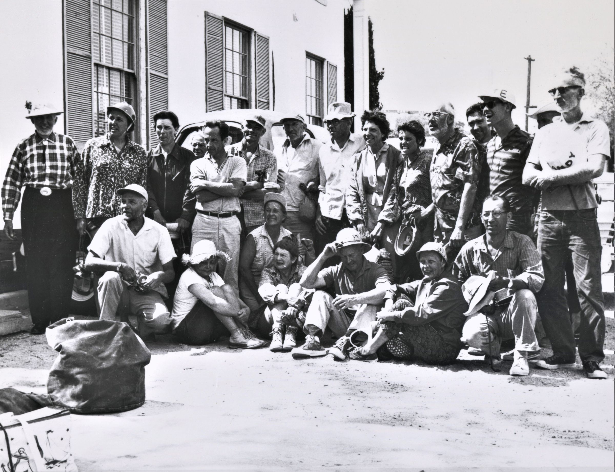 Boulder Dam Hotel; Georgie White Clark's River Rats; at the end of the 1st Annual Run; of the Colorado River; May 31, 1961; published in the Boulder City News; June 8, 1961; Georgie Clark; standing, ninth from the left; Bill Knighton photoCollection