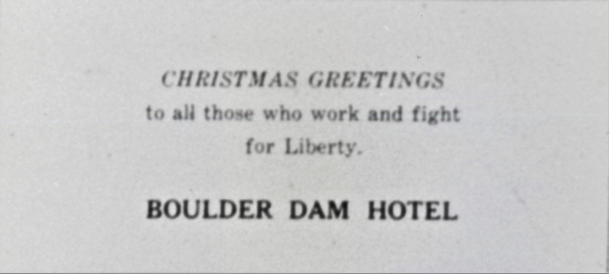 Boulder Dam Hotel Christmas advertisement; Boulder City News, December 25, 1942 p. 3Collection