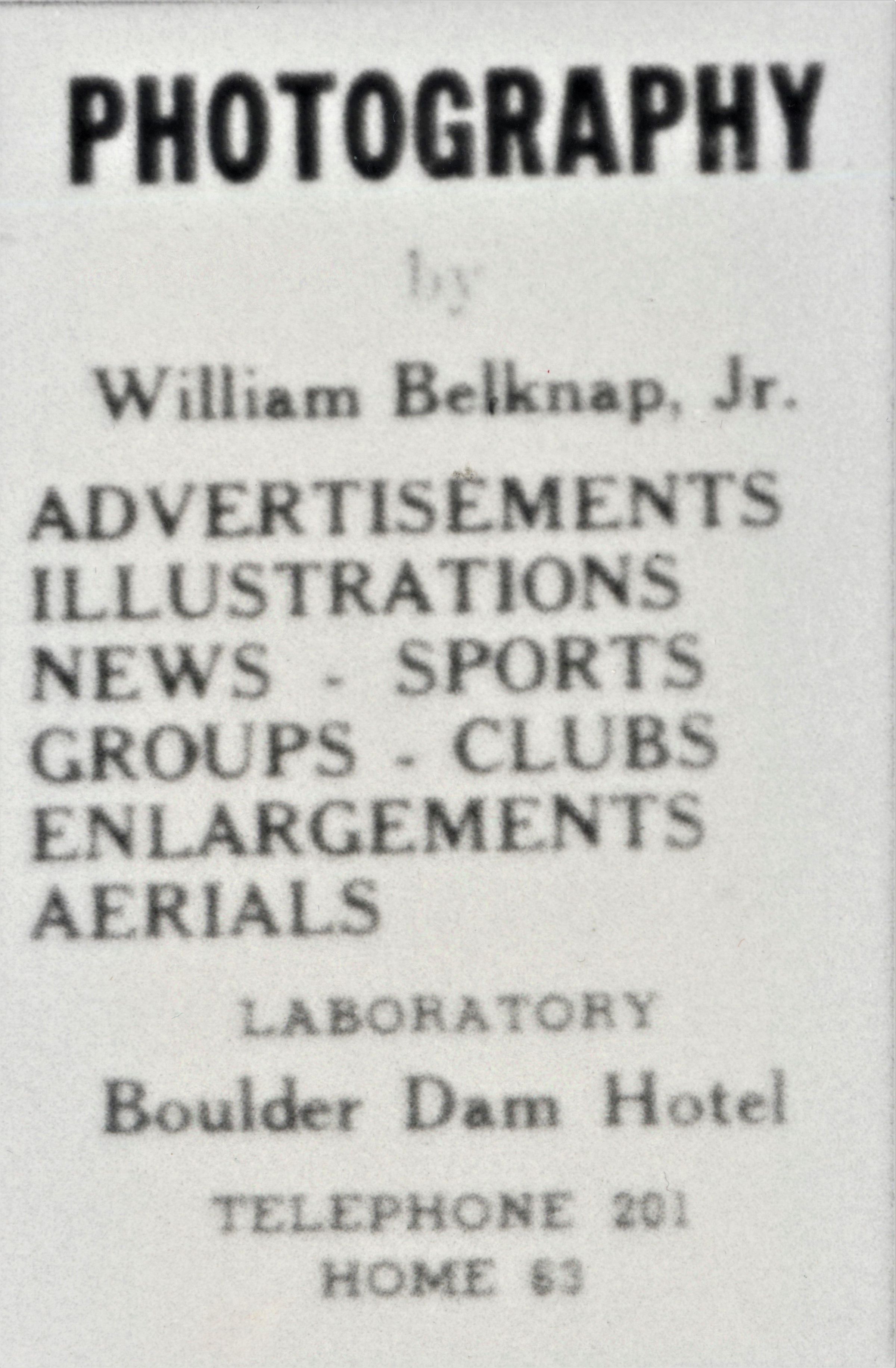 Belknap Photography advertisement Boulder Dam Hotel; Boulder City News, June 15, 1946 p. 4Collection