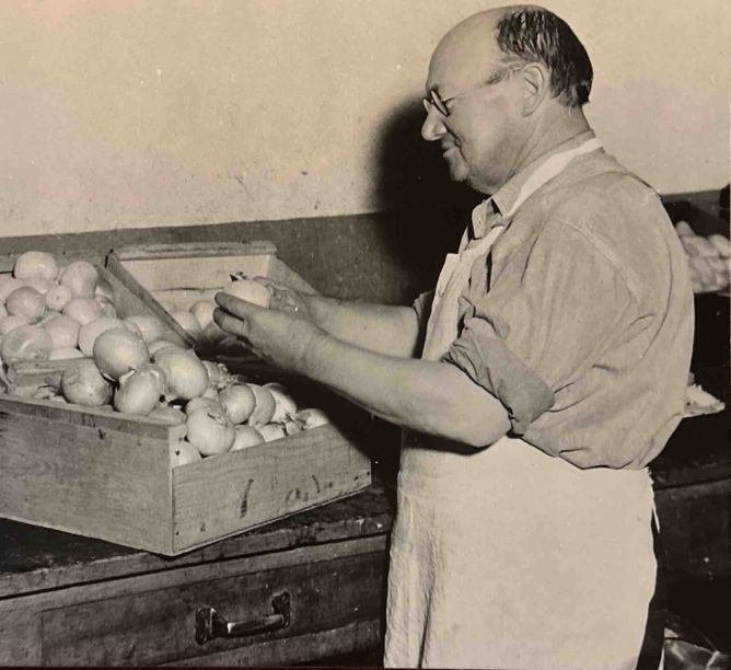 Boulder City; Anderson Brothers mess hall; peeling onions; c. 1932Lexicon
