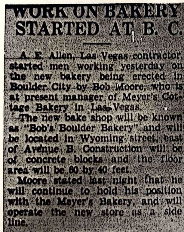 Bakeries - Boulder City: Bob's Boulder Bakery [1930s]Entry/Object ID