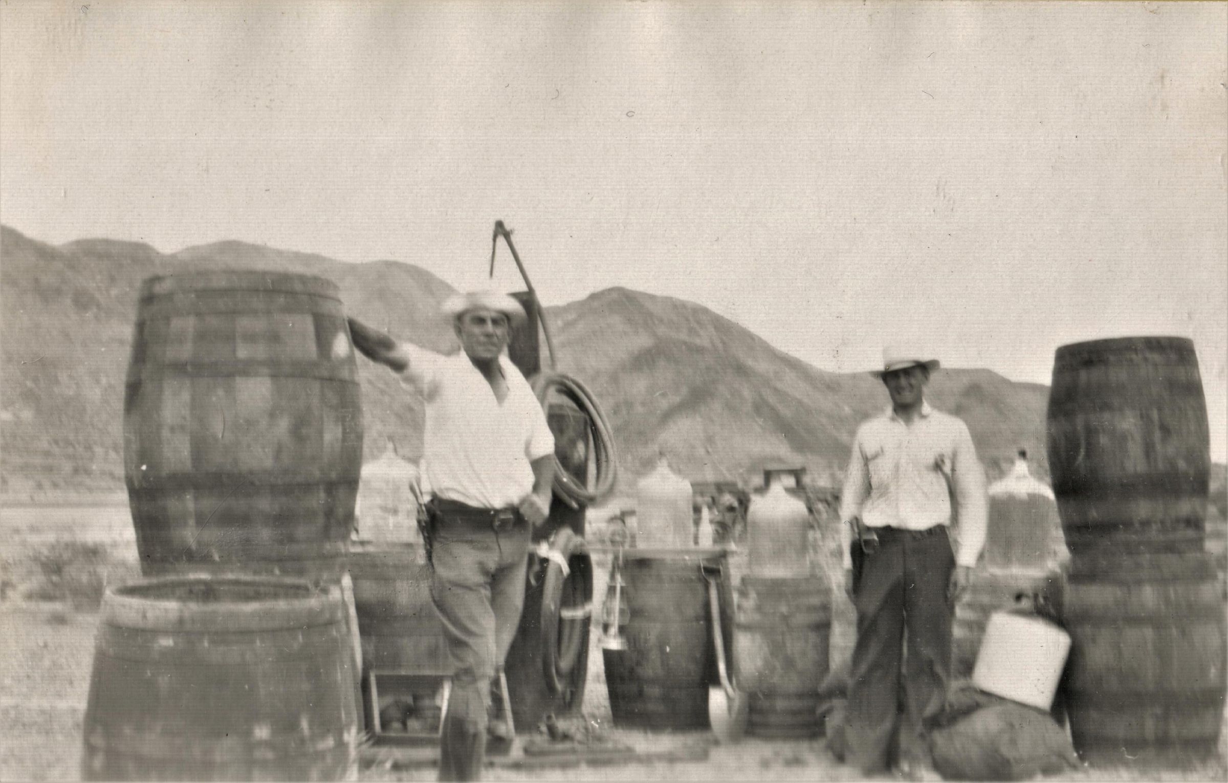 Boulder City law enforcement; bootleg liquor raid; at Railroad Pass; c. 1931-32;