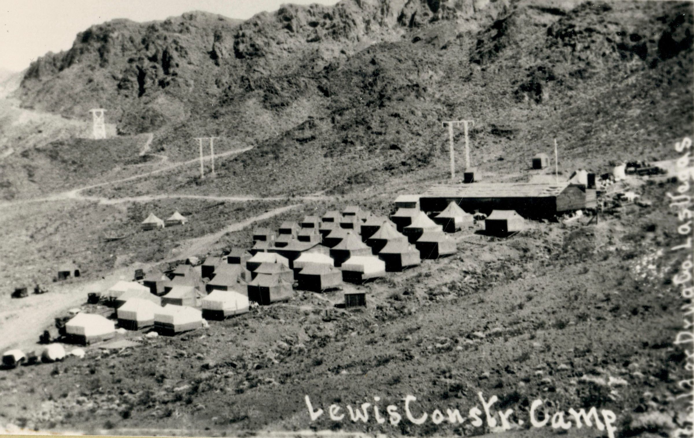 Hoover Dam construction: railroad: U. S. Construction Railroad: Lewis Construction Company camp in Hemenway Wash, 1931; Altus "Tex" and Dorothy NunleyCollection