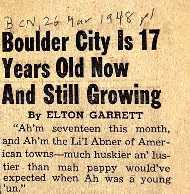 Boulder City - anniversaries: founding: 17th (1948)Entry/Object ID