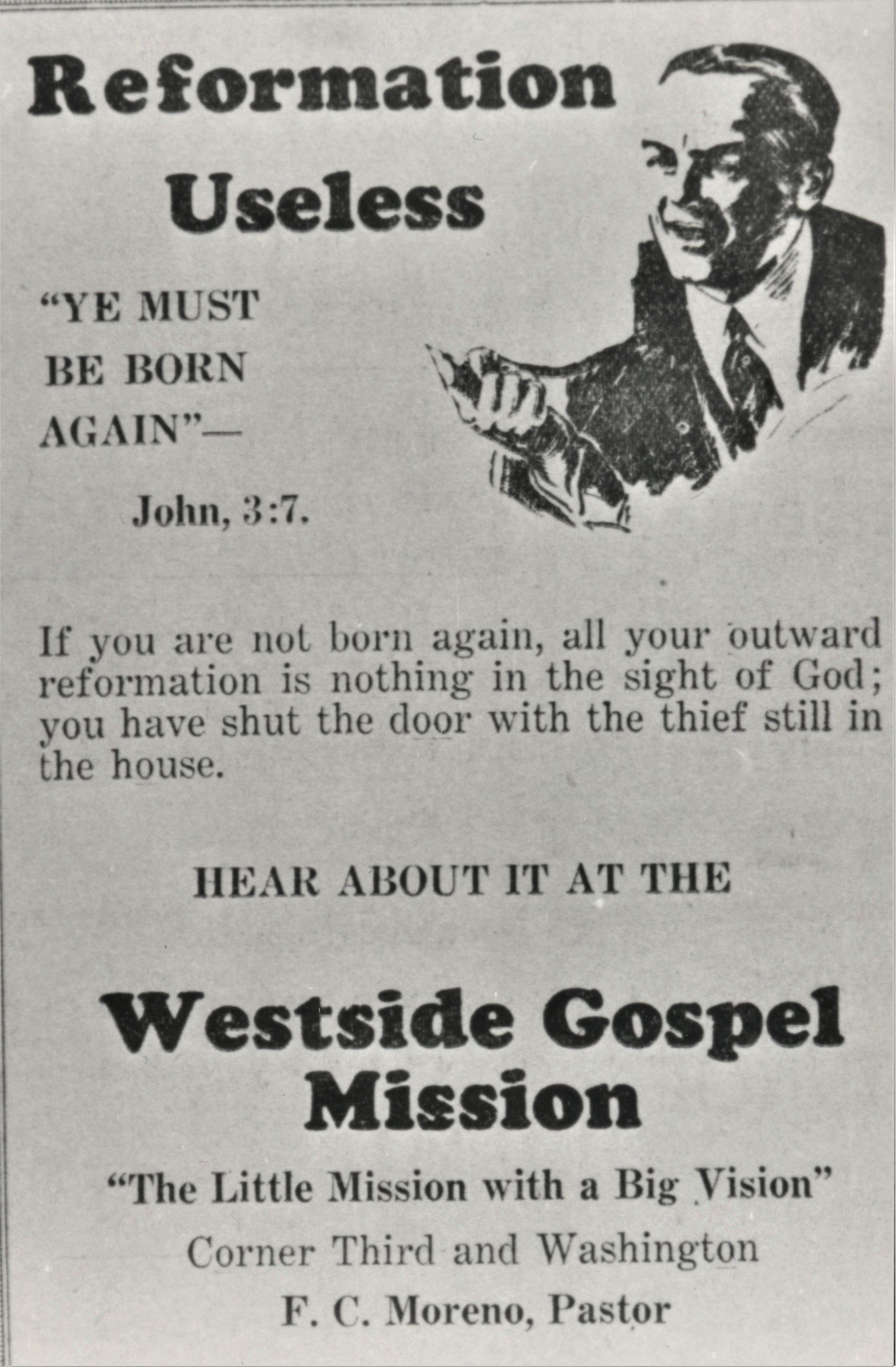 Las Vegas - Churches: West Side Gospel Mission: advertisement [from the Las Vegas Evening Review-Journal, January 15, 1932, p. 3]Collection