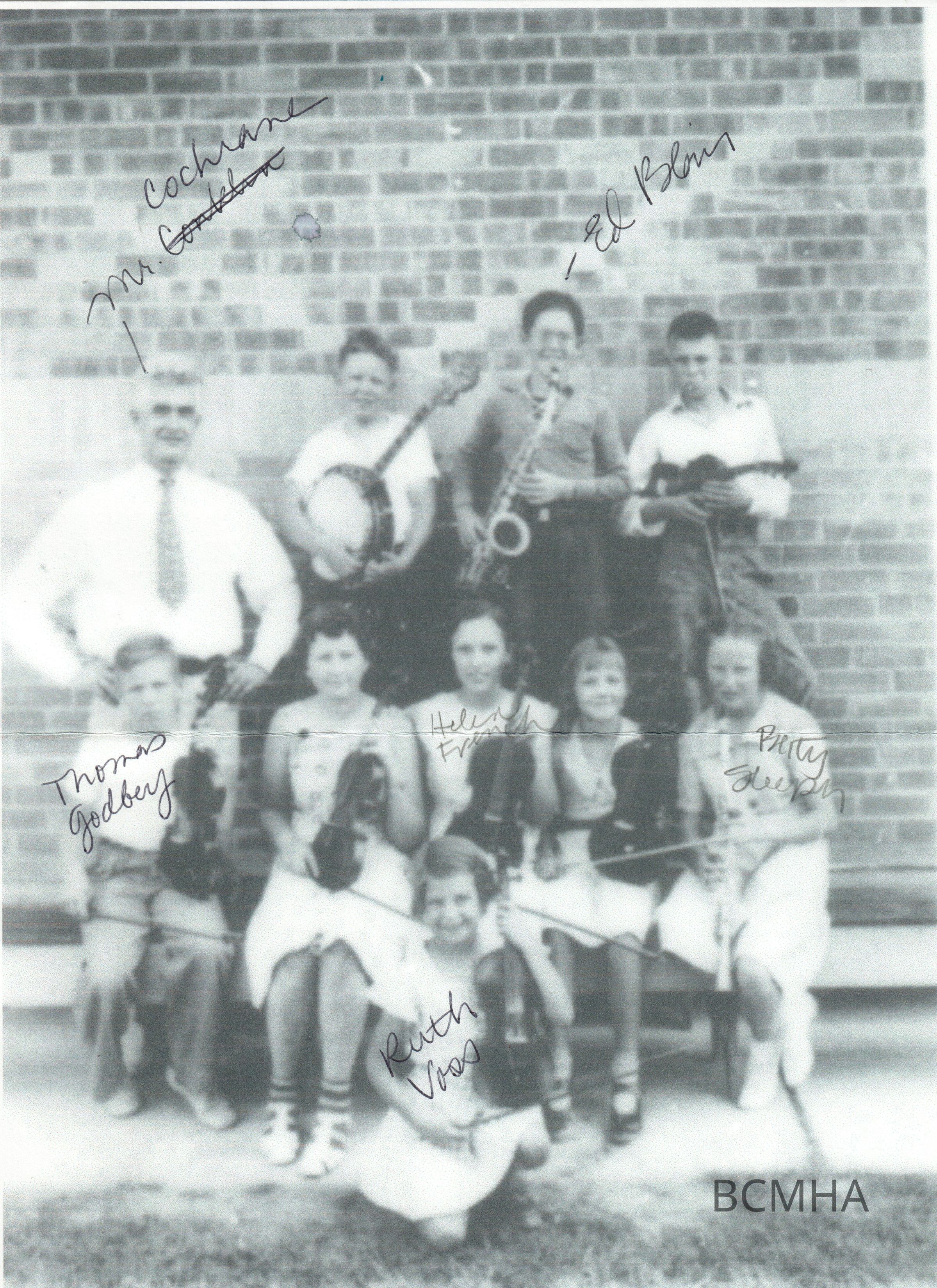 8th grade band, 1935 - Edgar Blair on the saxophone; Helen French; Betty Sleeper; Thomas Godbey; and Ruth VossCollection