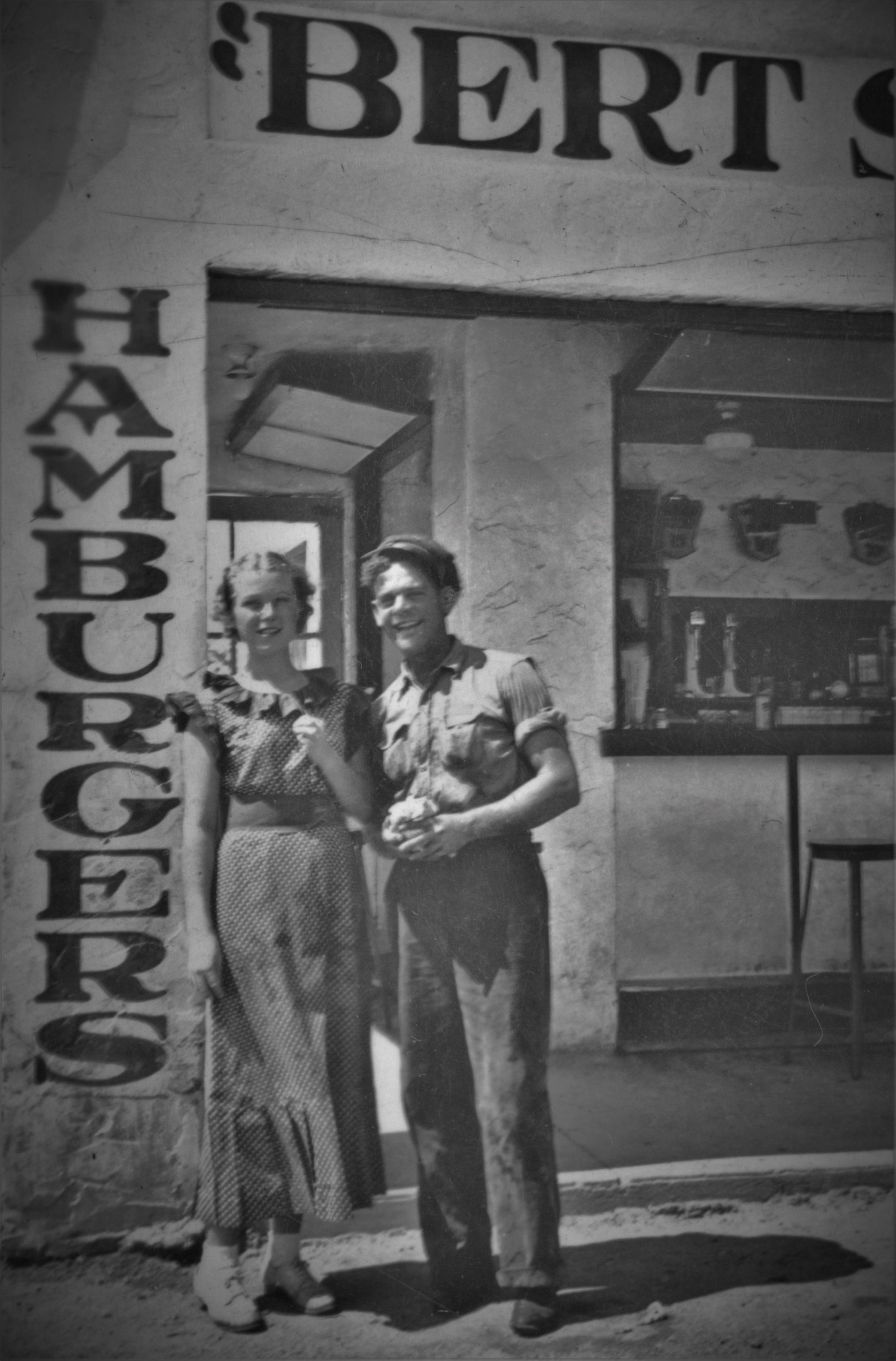 Boulder City restaurants, cafes, coffeehouses: Smith's Root Beer, c. 1936, l-r: Virigina "Teddy" Fenton; unidentified manCollection