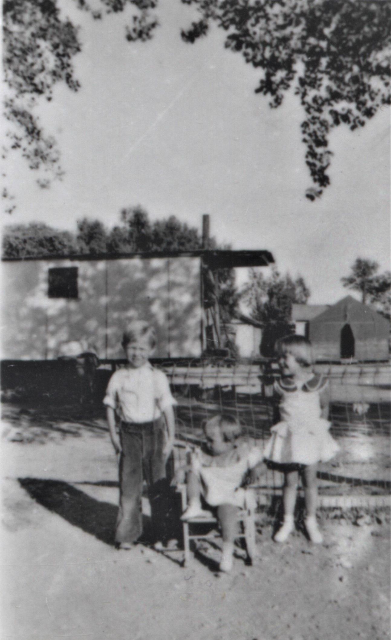 Burt Family posed at their home-made trailer house on Fifth Street in Las Vegas, c.1933-34, l-r: Don Burt; Donna Burt; Shirley Burt; Leroy and Lucille photoCollection