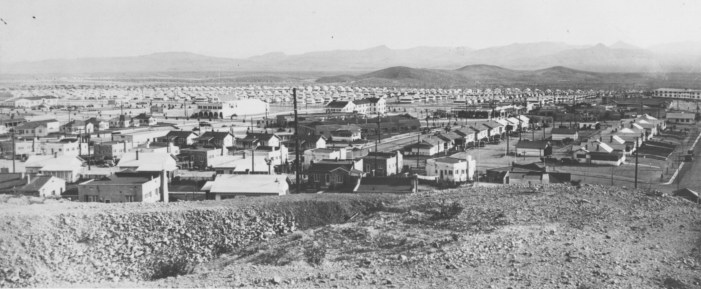 Panorama of Boulder City from Nob Hill; Boulder Dam Hotel, center; before the summer/fall 1934 expansion; ca. spring 1934; UNLS photo, Manis Collection 0100 : 0282Made/Created
