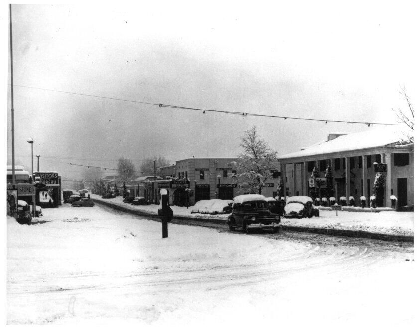 Boulder Dam Hotel & Arizona Street 1948 blizzard; Robert and Lois Beangureau photoPhotograph Details