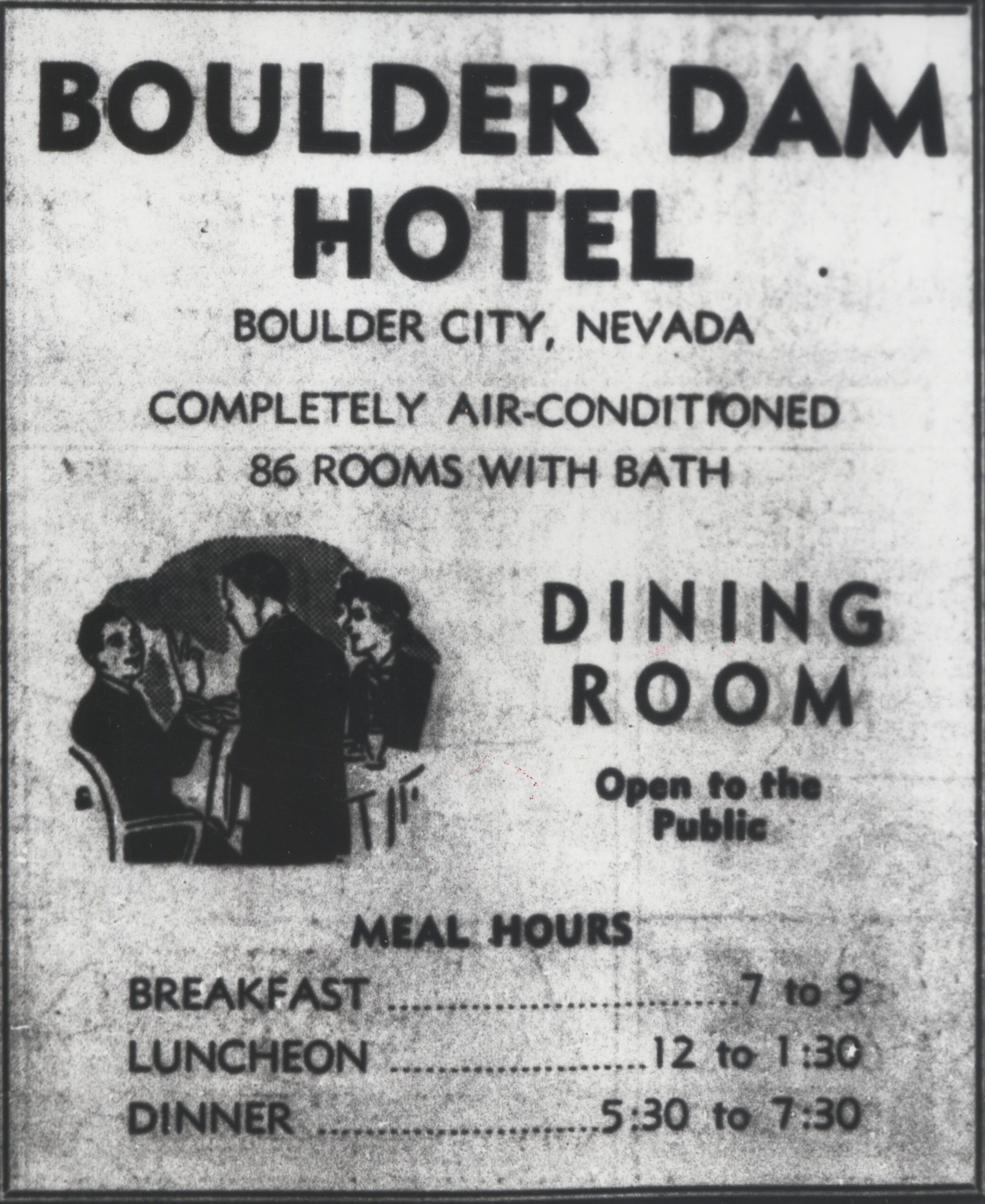 Boulder Dam Hotel dining room Advertisement, Las Vegas Evening Review Journal, Sept. 18, 1937Entry/Object ID