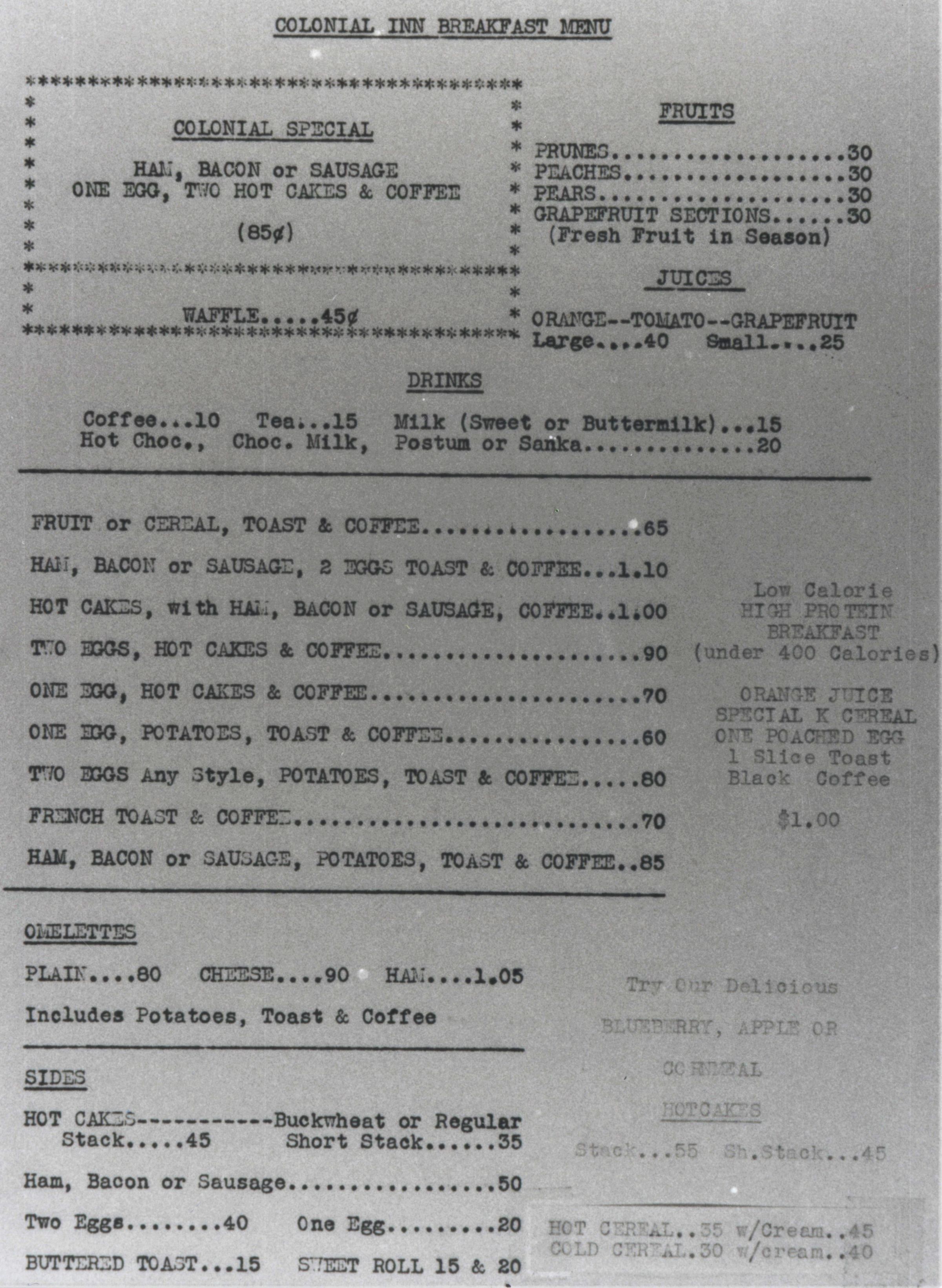 Boulder Dam Hotel dining room breakfast menu; ca. 1961; Jackie Brown photoCollection