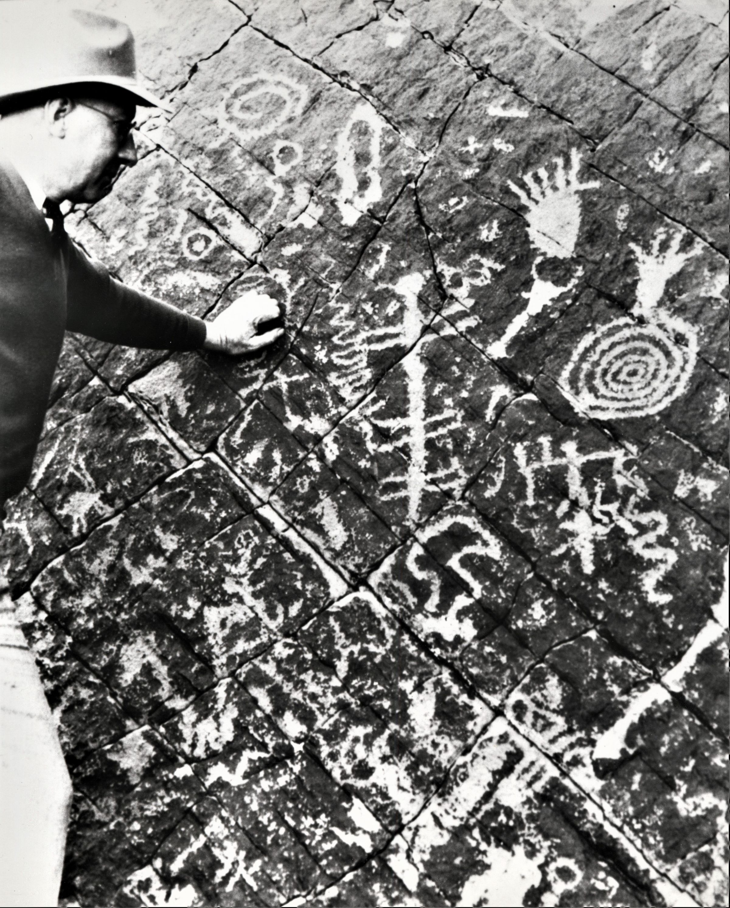 Petroglyphs at Atlatl Rock, Valley of Fire, NV April 20, 1935Entry/Object ID