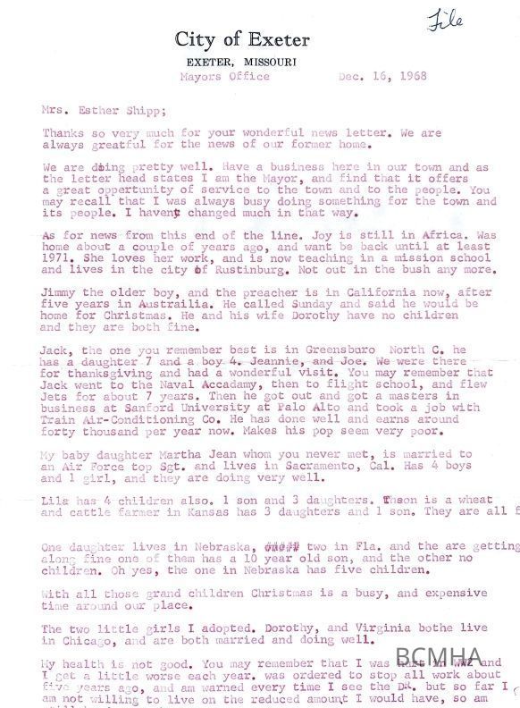 This file contains: hand-typed letter; Christmas card; newspaper clippingsCataloged By