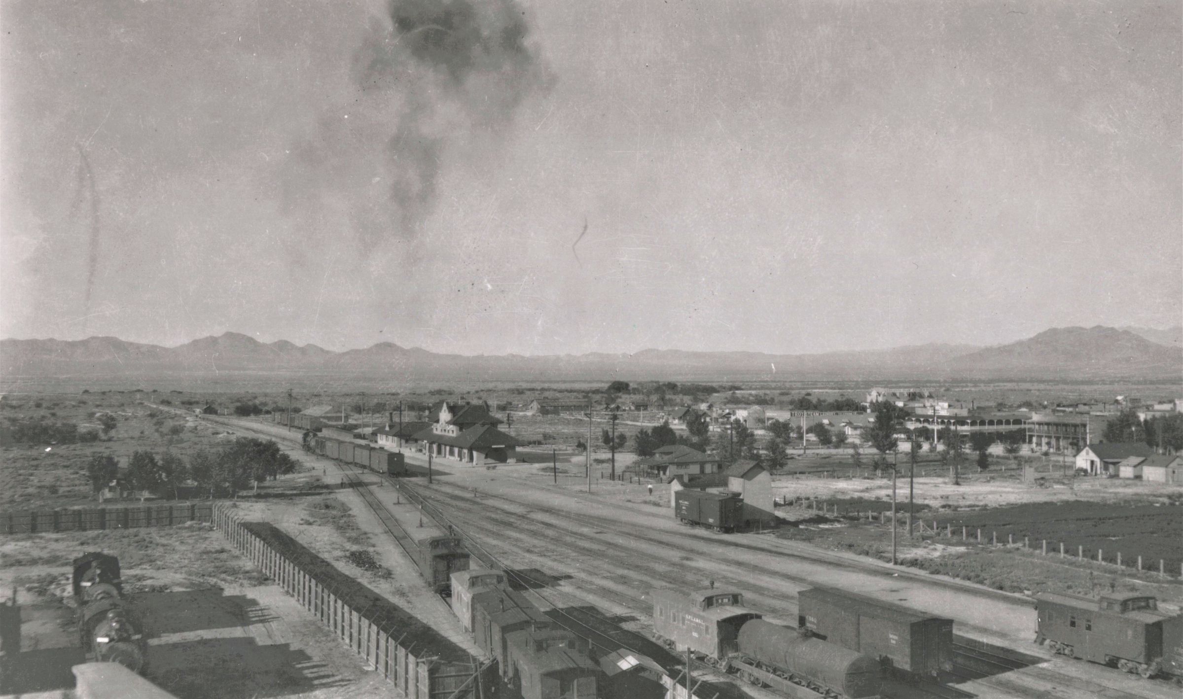 Las Vegas view across the San Pedro, Los Angeles, Salt Lake later Union Pacific Railroad Yards, ca. 1910; UNLS; McBride CollectionCollection