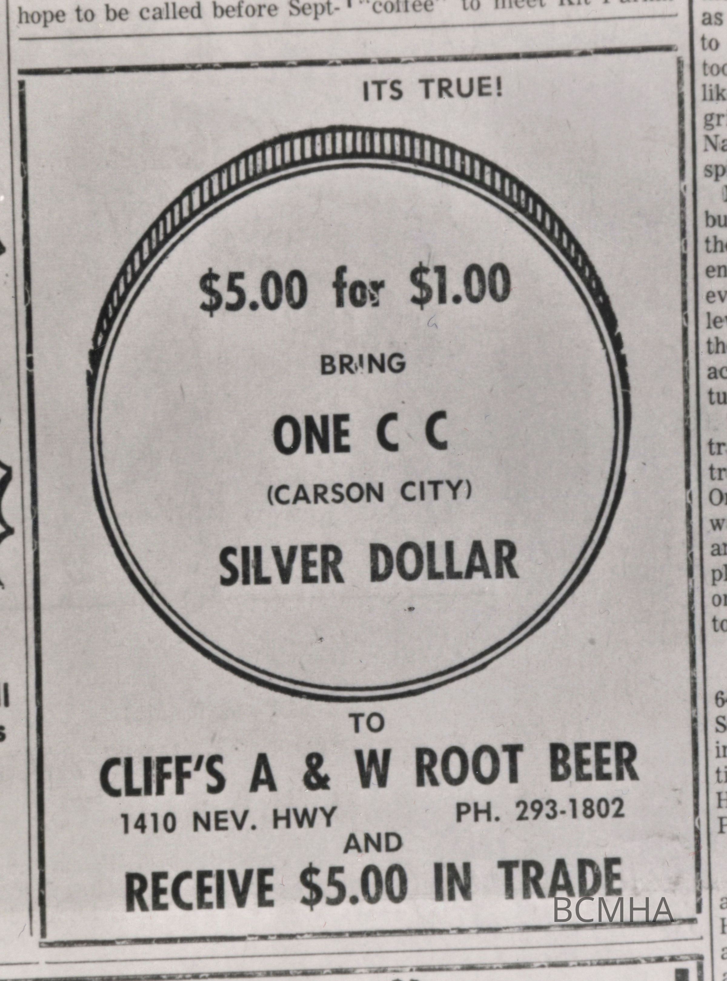 Boulder City A & W Root beer advertisement, June 27, 1963Entry/Object ID