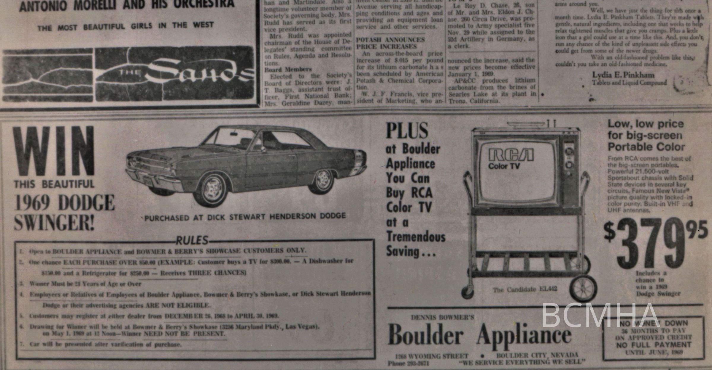 Advertisements: Boulder Appliance; Boulder City News, January 2, 1969, p.3Collection