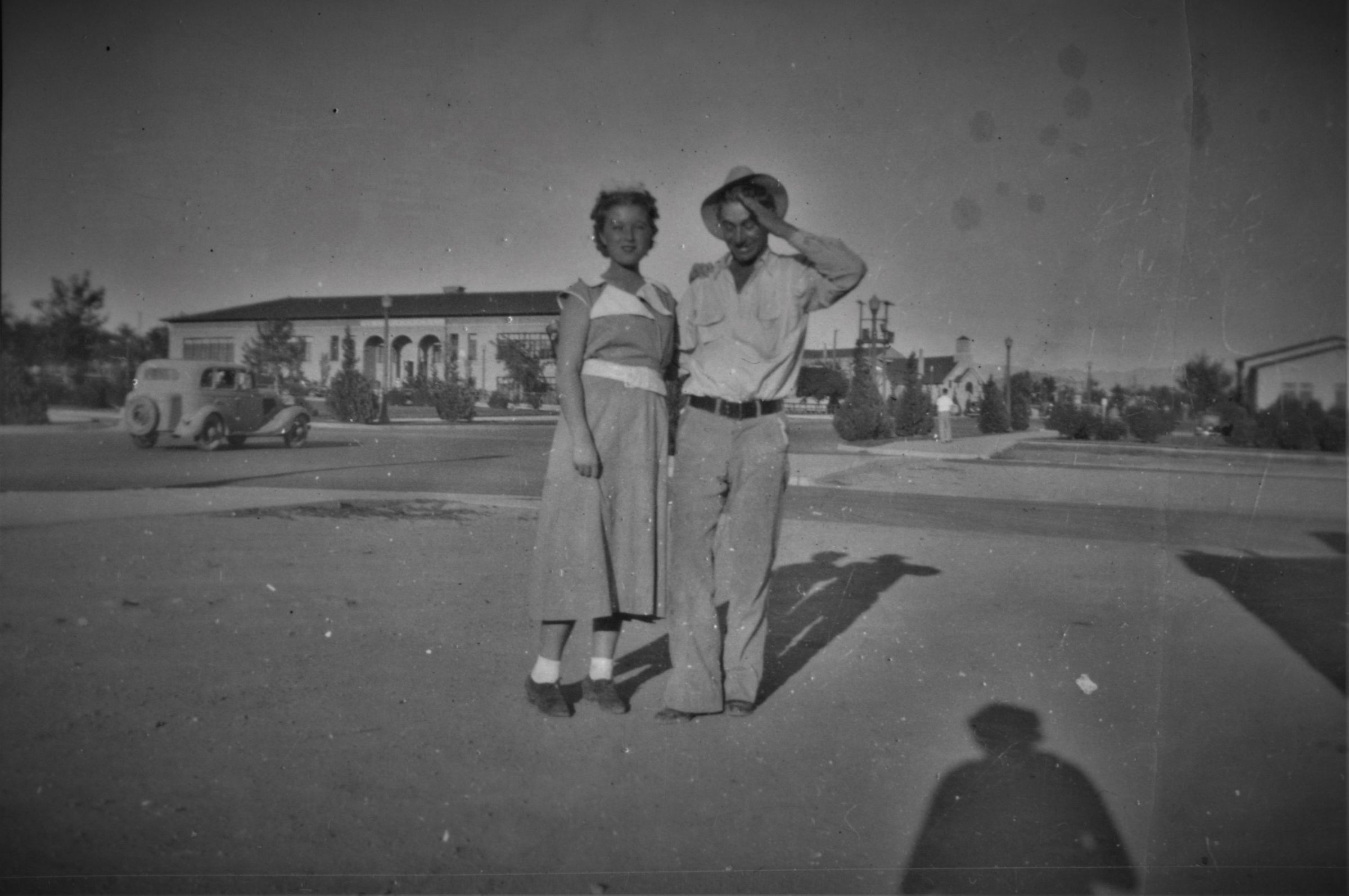 Boulder City restaurants, cafes, coffeehouses: Smith's Root Beer, c. 1936, l-r: Virginia "Teddy" Fenton; unidentified manCollection