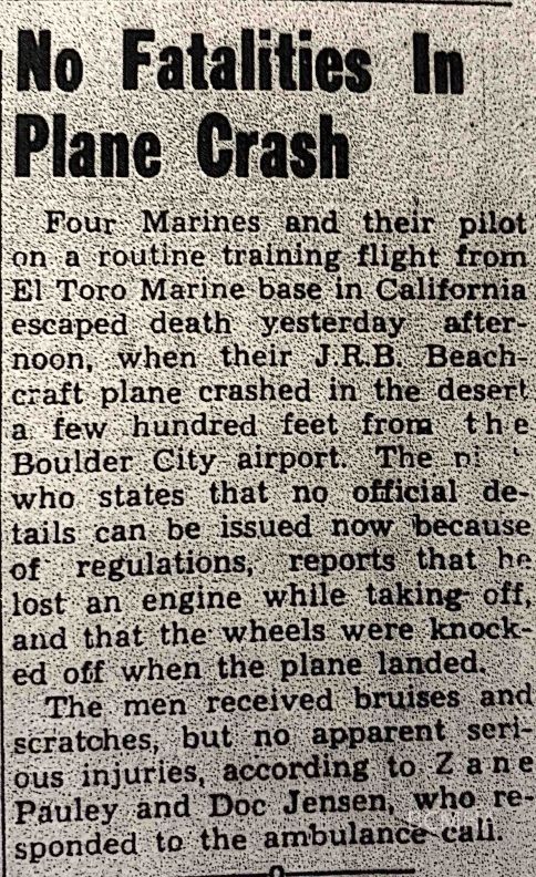 Airports and Aviation - Boulder City: Accidents: U. S. Marine Beechcraft [March 4, 1953]Entry/Object ID