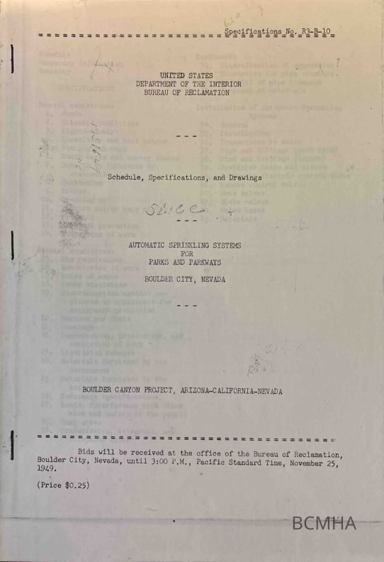 Automatic Sprinkling Systems for Parks and Parkways, Boulder City, NevadaEntry/Object ID