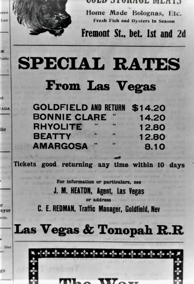 Las Vegas and Tonopah Railroad Advertisement November 9, 1912Entry/Object ID